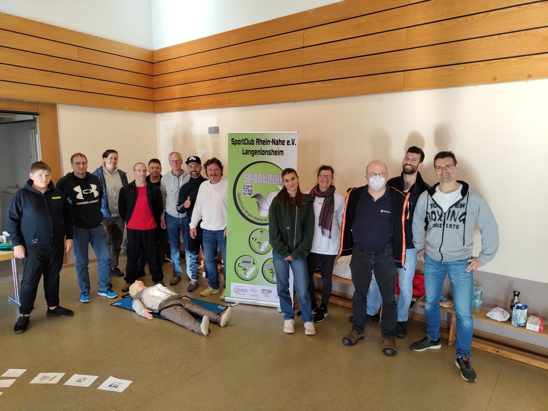 Der Vorstand des Sportclub Rhein-Nahe e.V. hat am 5.11.2022 in der Gemeindehalle von Langenlonsheim einen Erste Hilfe Kurs für seine ÜbungsleiterInnen organisiert. Der Kurs wurde von Johannes König sehr interessant gestalten. Nun hoffen wir das die Teilnehmer ihr neues Wissen niemals anwenden müssen.