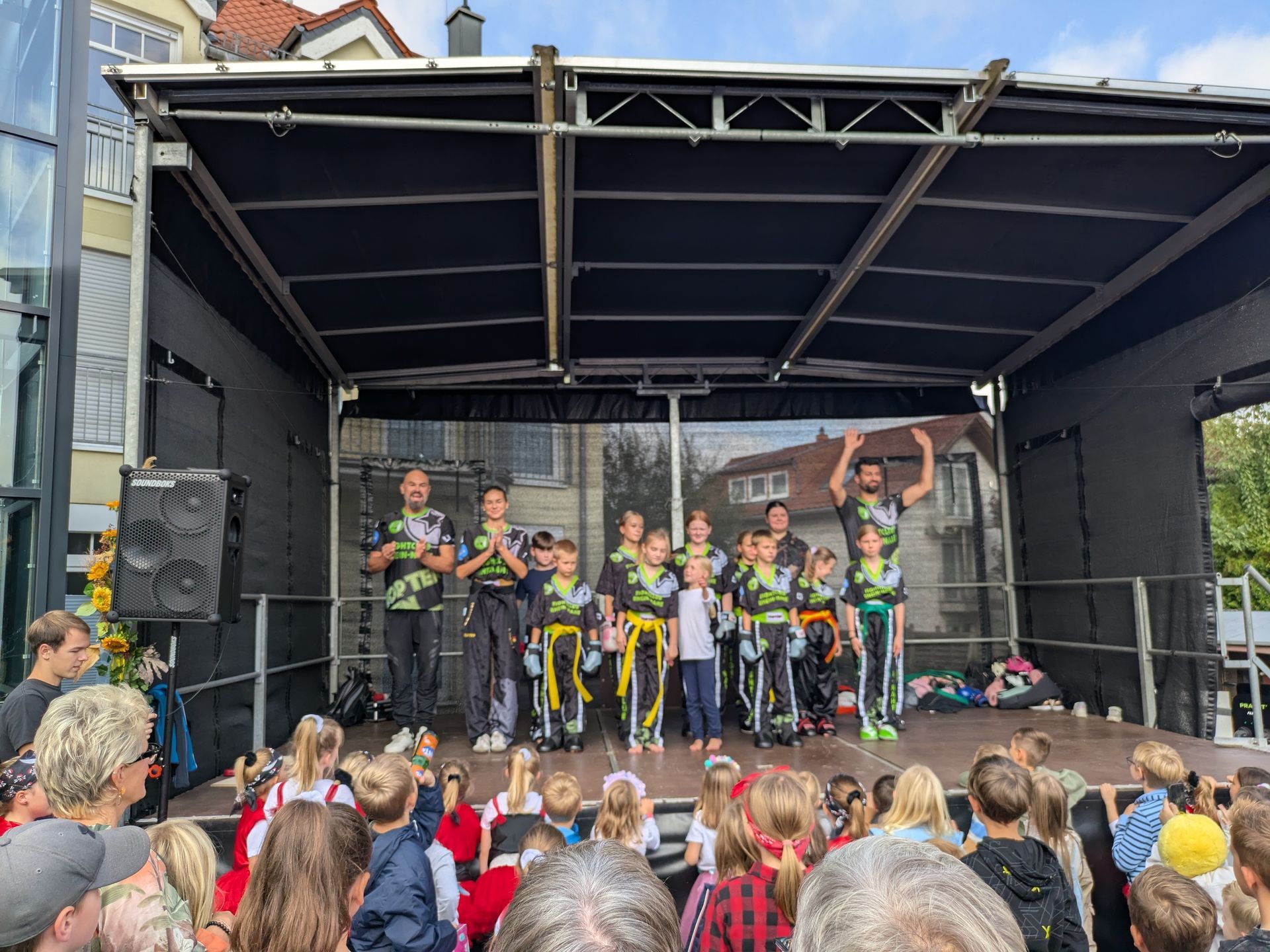 Am Sonntag, den 21. September 2025, durfte unsere Kampfkids-Abteilung zeigen, was in ihr steckt: Mit einer tollen Vorführung auf der Gensinger Kerb präsentierten sie voller Stolz nicht nur ihr Können, sondern auch den starken Zusammenhalt und Teamgeist unseres SportClub Rhein-Nahe e.V.. Unter der motivierenden Anleitung von Trainer Caner zeigten die jungen Kämpferinnen und Kämpfer, was sie in den letzten Monaten mit viel Fleiß, Disziplin und Spaß im Training gelernt haben – und begeisterten damit das Publikum. Ein ganz besonderer Moment war der Auftritt von Theresa, die direkt aus Lido di Jesolo (Italien) von der Junioren-Europameisterschaft zu uns kam. Mit Gold, Silber und Bronze im Gepäck wurde sie von den Zuschauerinnen und Zuschauern mit großem Applaus gefeiert. Dieser emotionale Empfang zeigte einmal mehr, wie sehr sportlicher Erfolg, Teamgeist und Vereinszusammenhalt bei uns Hand in Hand gehen.