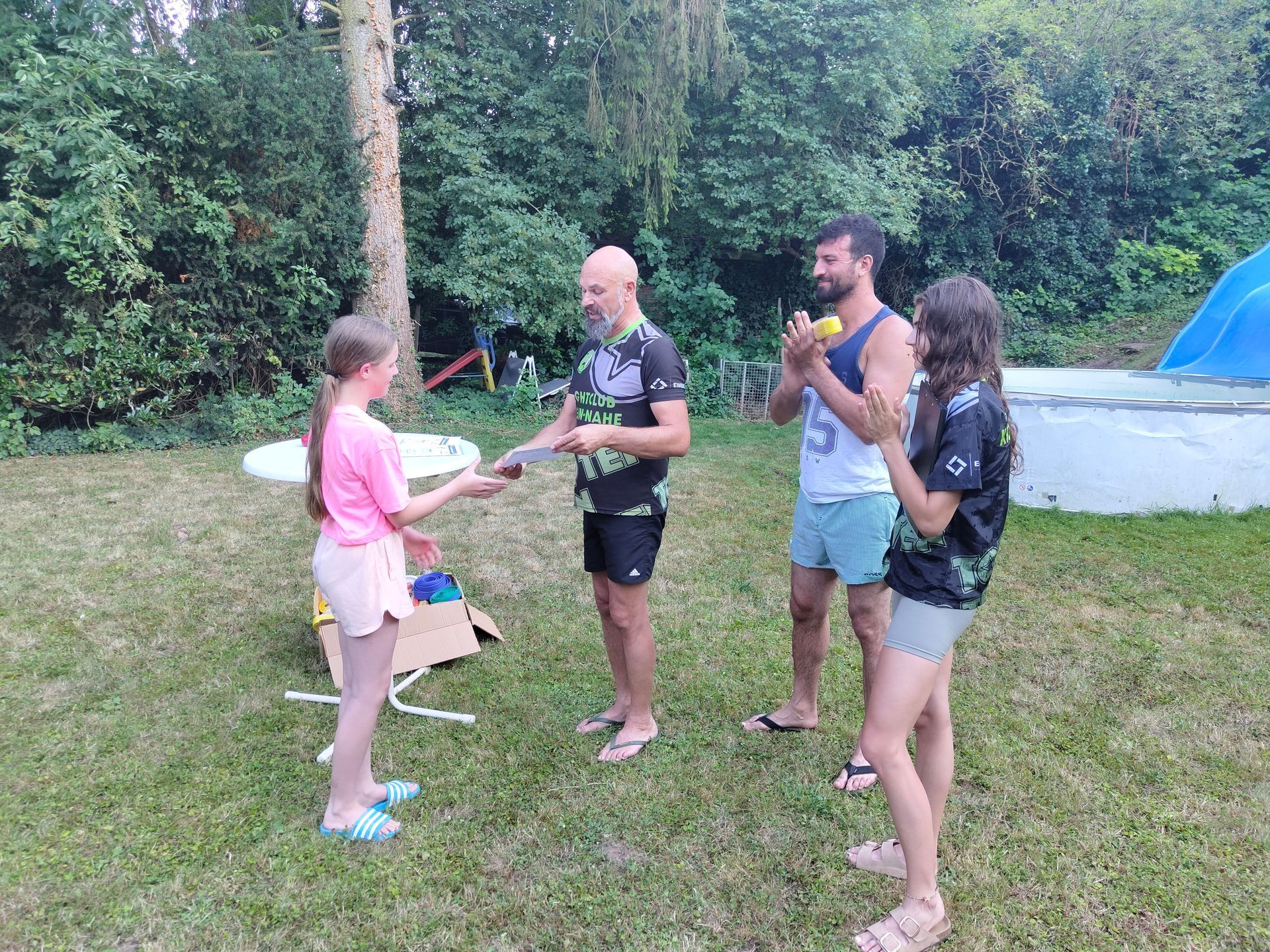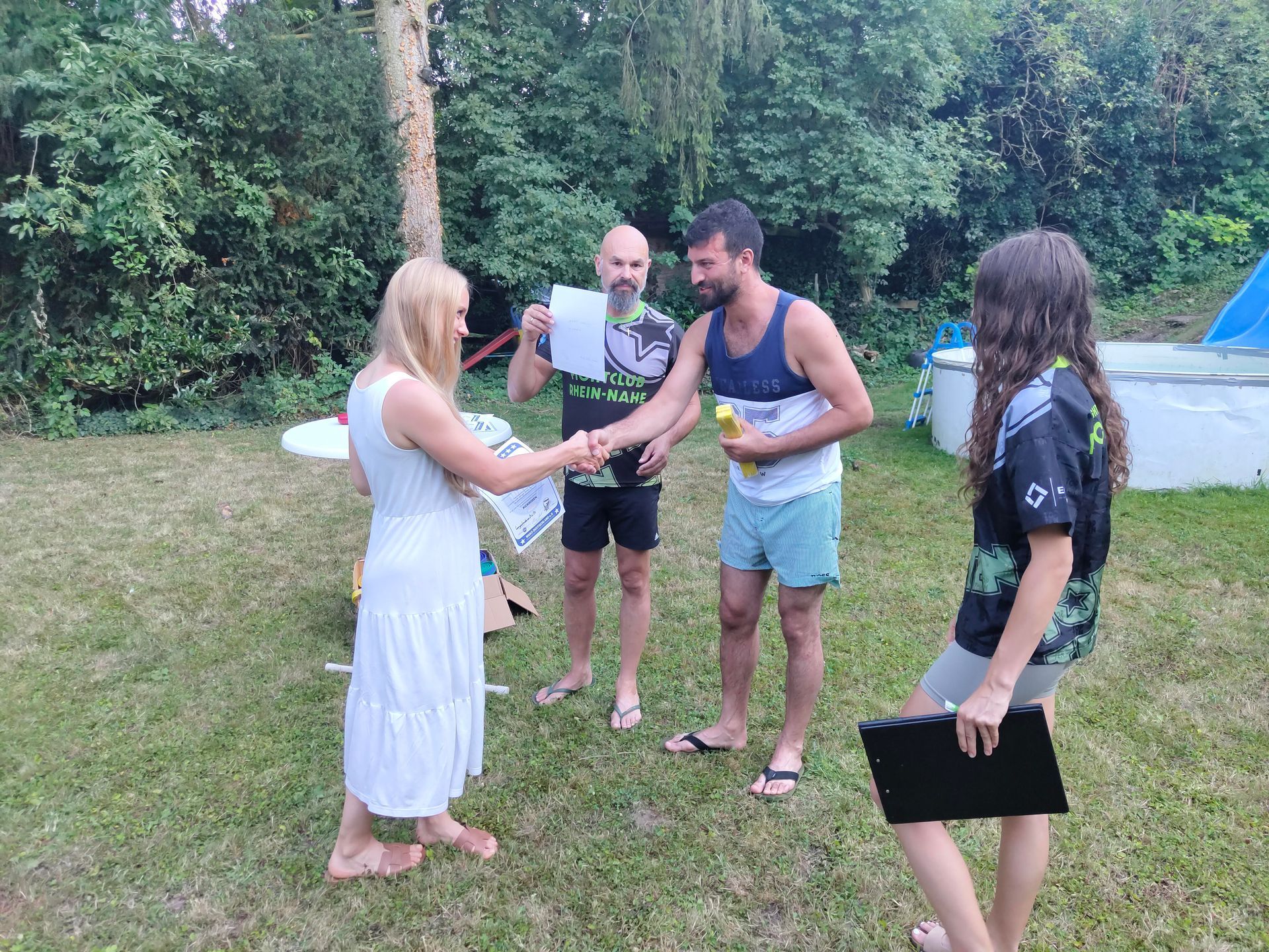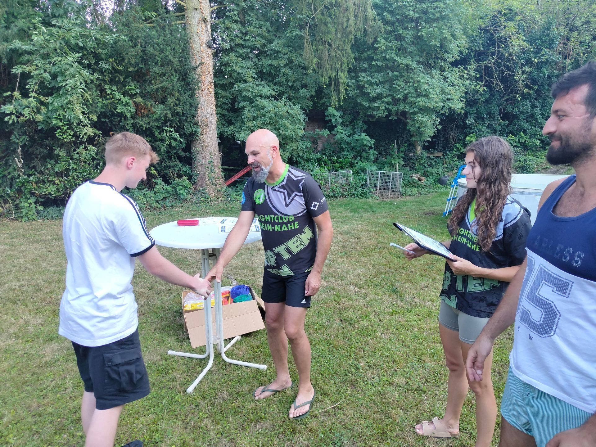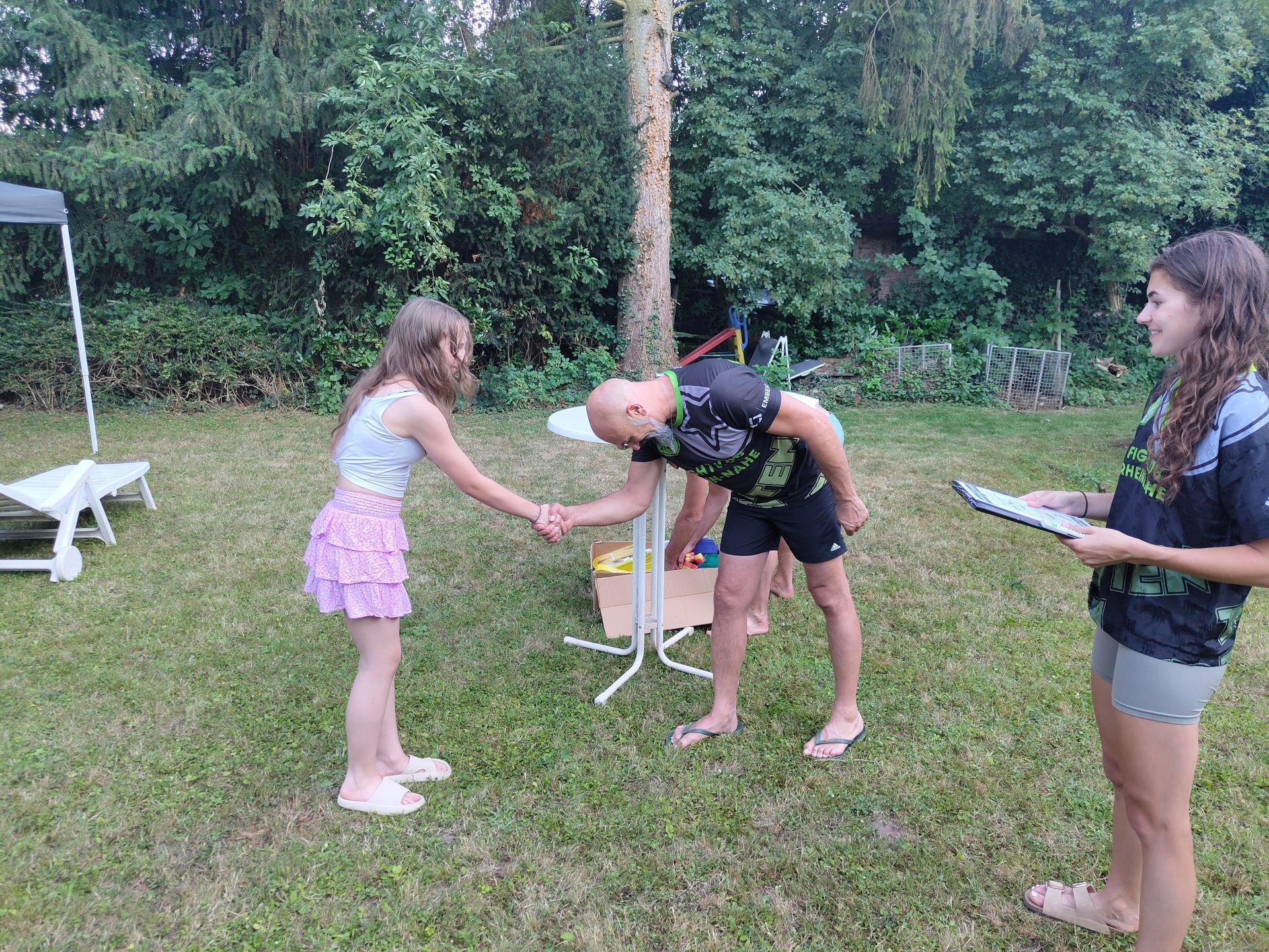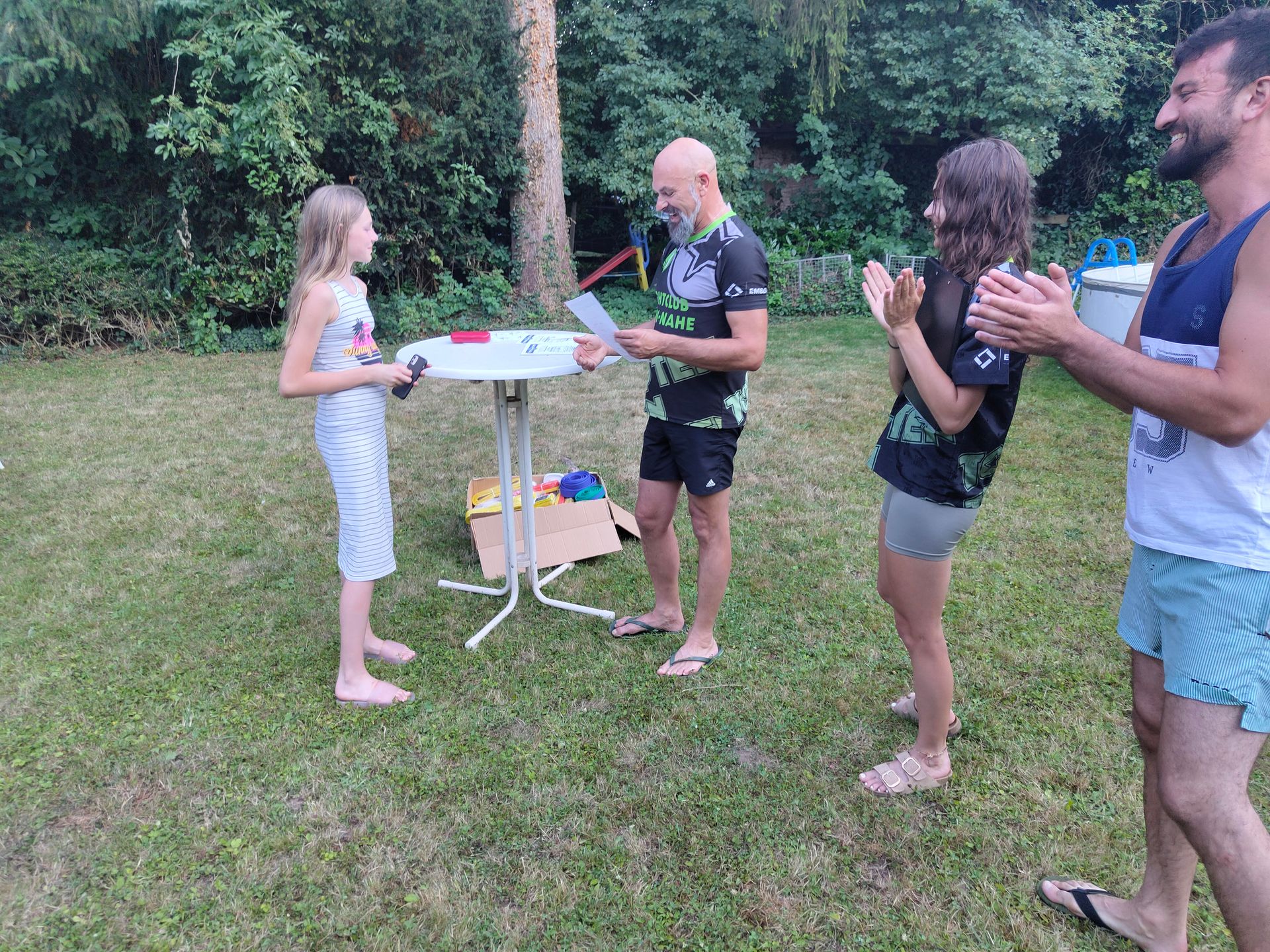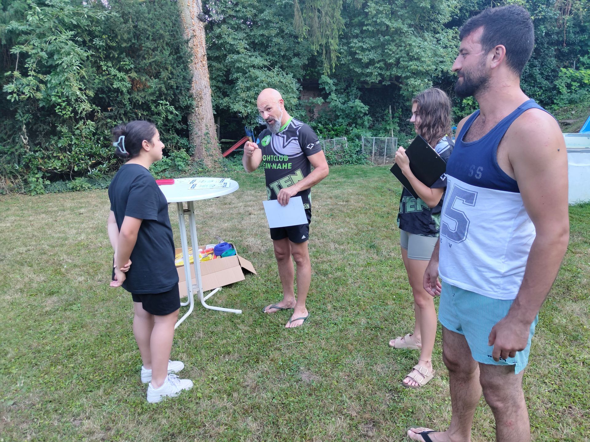 Die Verabschiedung in die Sommerferien wurde auch 2025 wieder mit einer coolen Grillparty in Dirks Garten gebührend gefeiert. Bei brütenden Temperaturen wurden die Gürtel an die Absolventen der, vor kurzem absolvierten Gürtelprüfung übergeben. Die Kids durften die Badehosen auspacken und sich in den Pool stürzen. Die Erwachsenen nutzten die Gartenparty für das ein oder andere Gespräch. Allen hat es Spaß gemacht und dank der reichlichen Salatspenden ist zusammen mit den Würstchen vom Grill auch jeder satt geworden. Jetzt heißt es wohlverdiente Sommerpause und nach den Ferien geht es mit Volldampf wieder voran. Glückwunsch an dieser Stelle nochmal an alle, die die Gürtelprüfung bestanden haben.