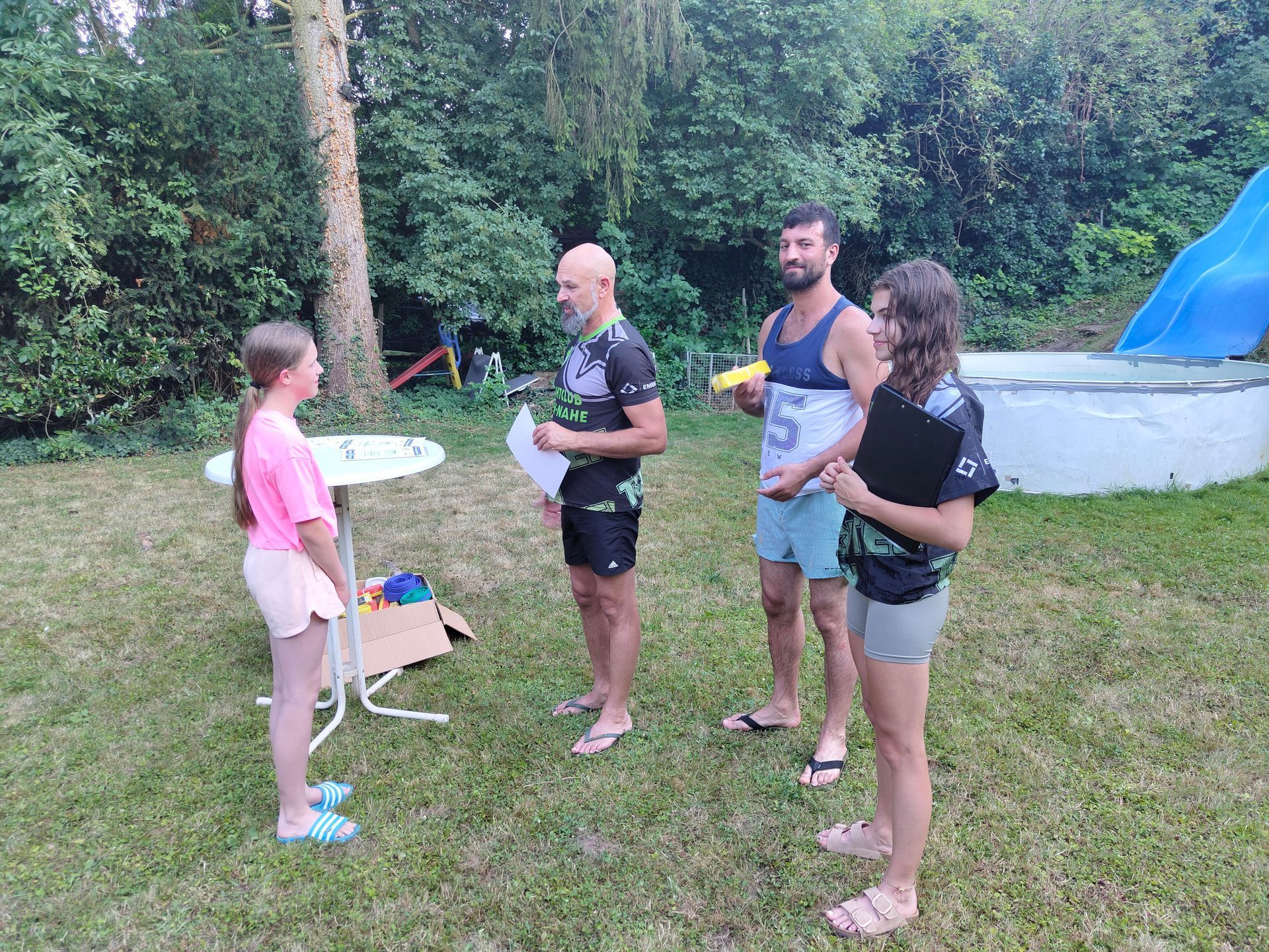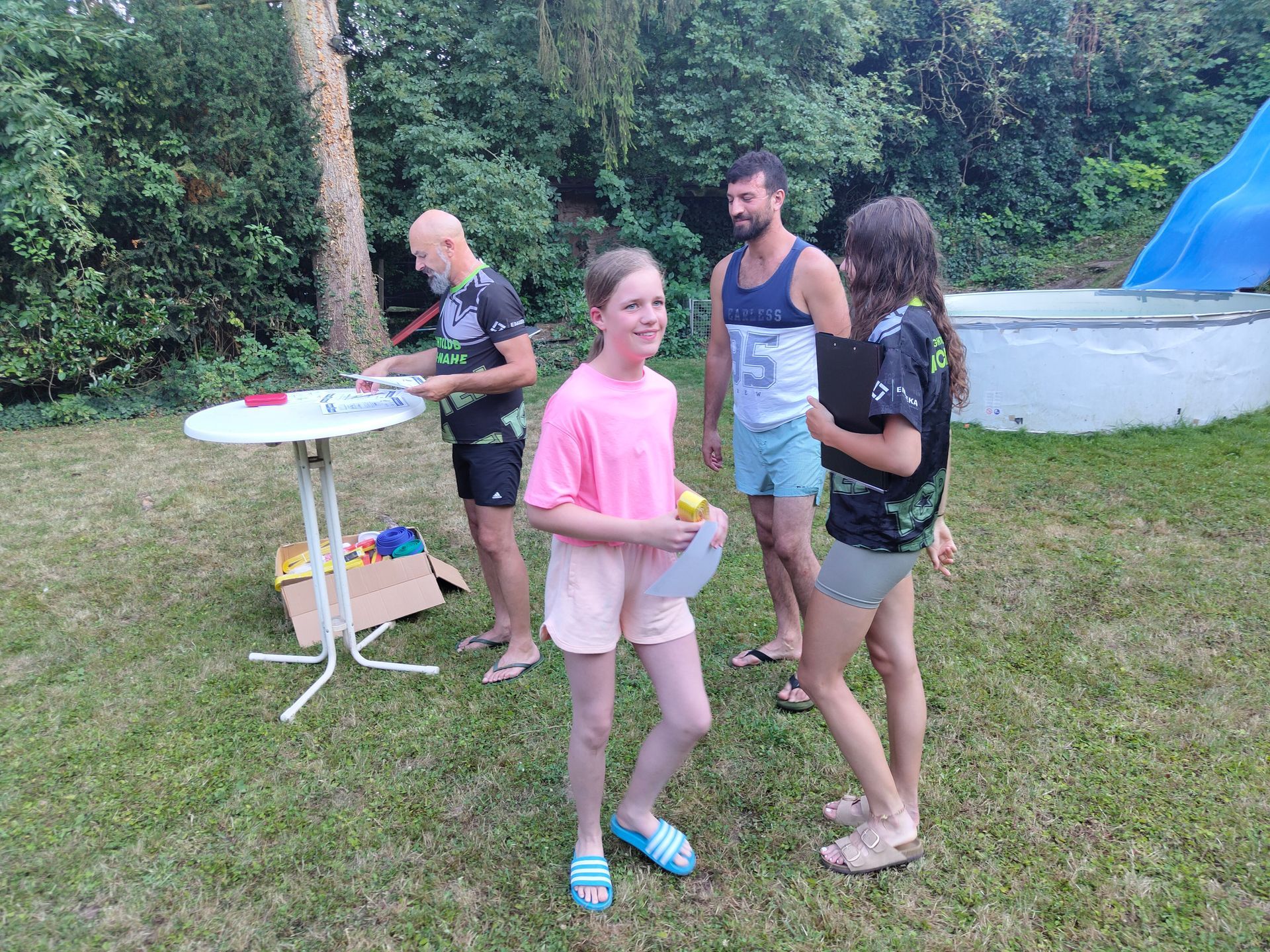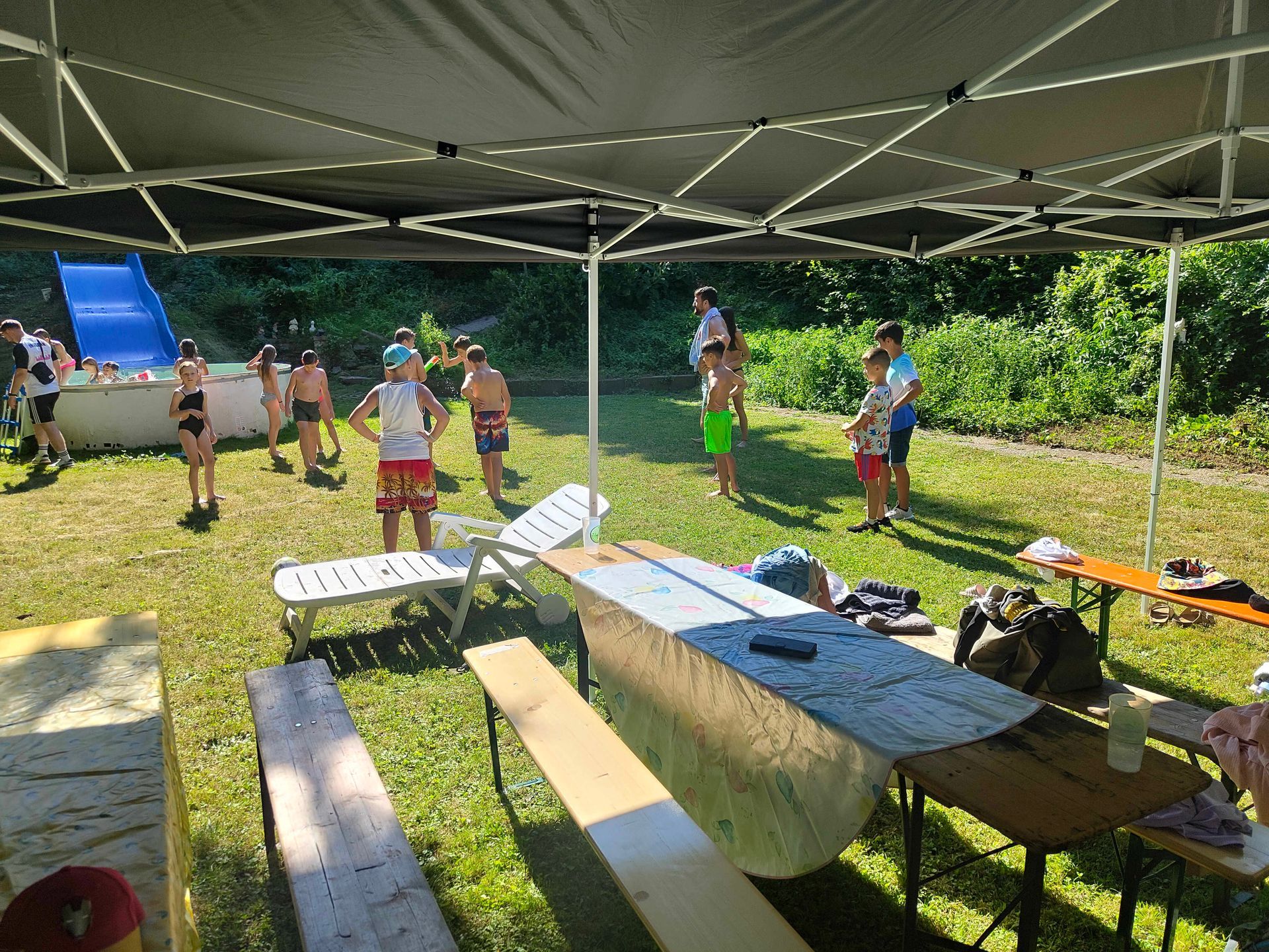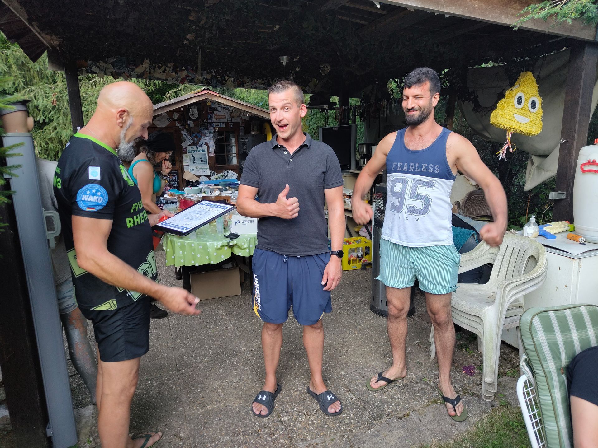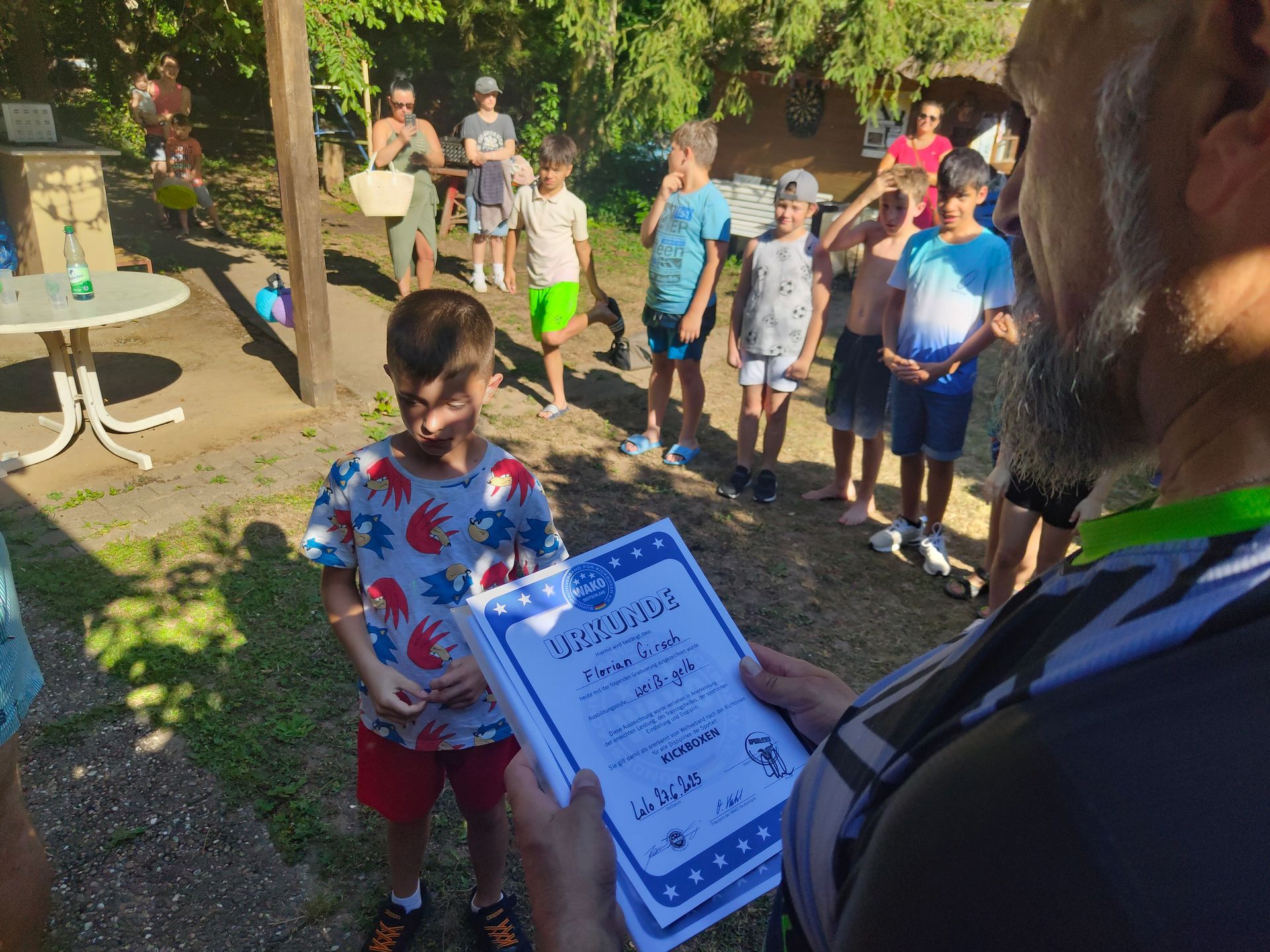 Die Verabschiedung in die Sommerferien wurde auch 2025 wieder mit einer coolen Grillparty in Dirks Garten gebührend gefeiert. Bei brütenden Temperaturen wurden die Gürtel an die Absolventen der, vor kurzem absolvierten Gürtelprüfung übergeben. Die Kids durften die Badehosen auspacken und sich in den Pool stürzen. Die Erwachsenen nutzten die Gartenparty für das ein oder andere Gespräch. Allen hat es Spaß gemacht und dank der reichlichen Salatspenden ist zusammen mit den Würstchen vom Grill auch jeder satt geworden. Jetzt heißt es wohlverdiente Sommerpause und nach den Ferien geht es mit Volldampf wieder voran. Glückwunsch an dieser Stelle nochmal an alle, die die Gürtelprüfung bestanden haben.