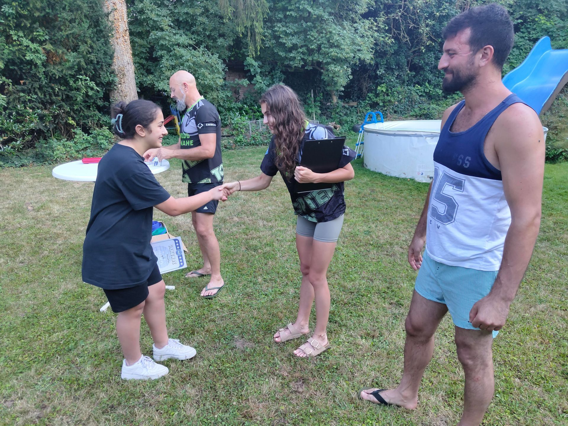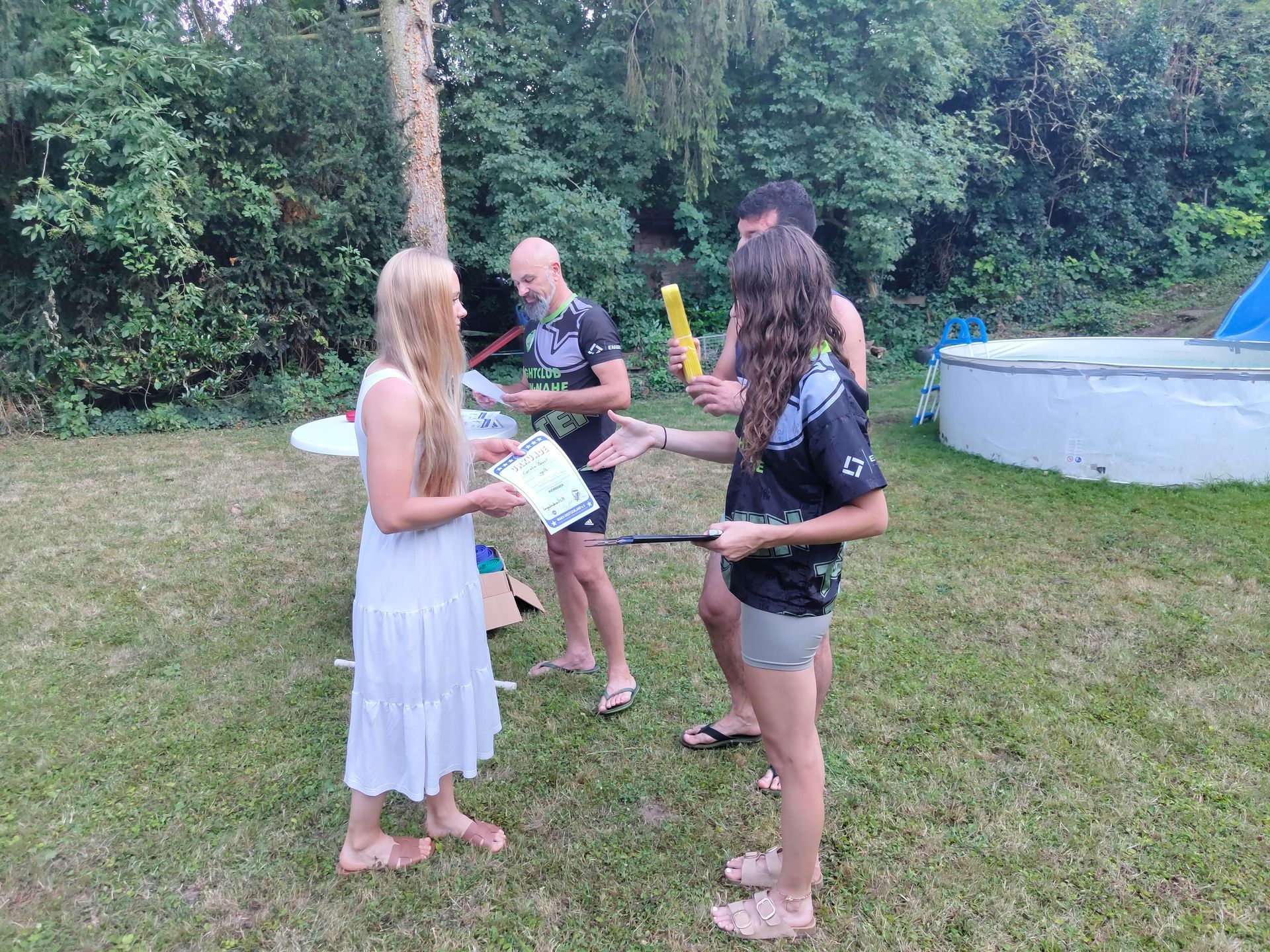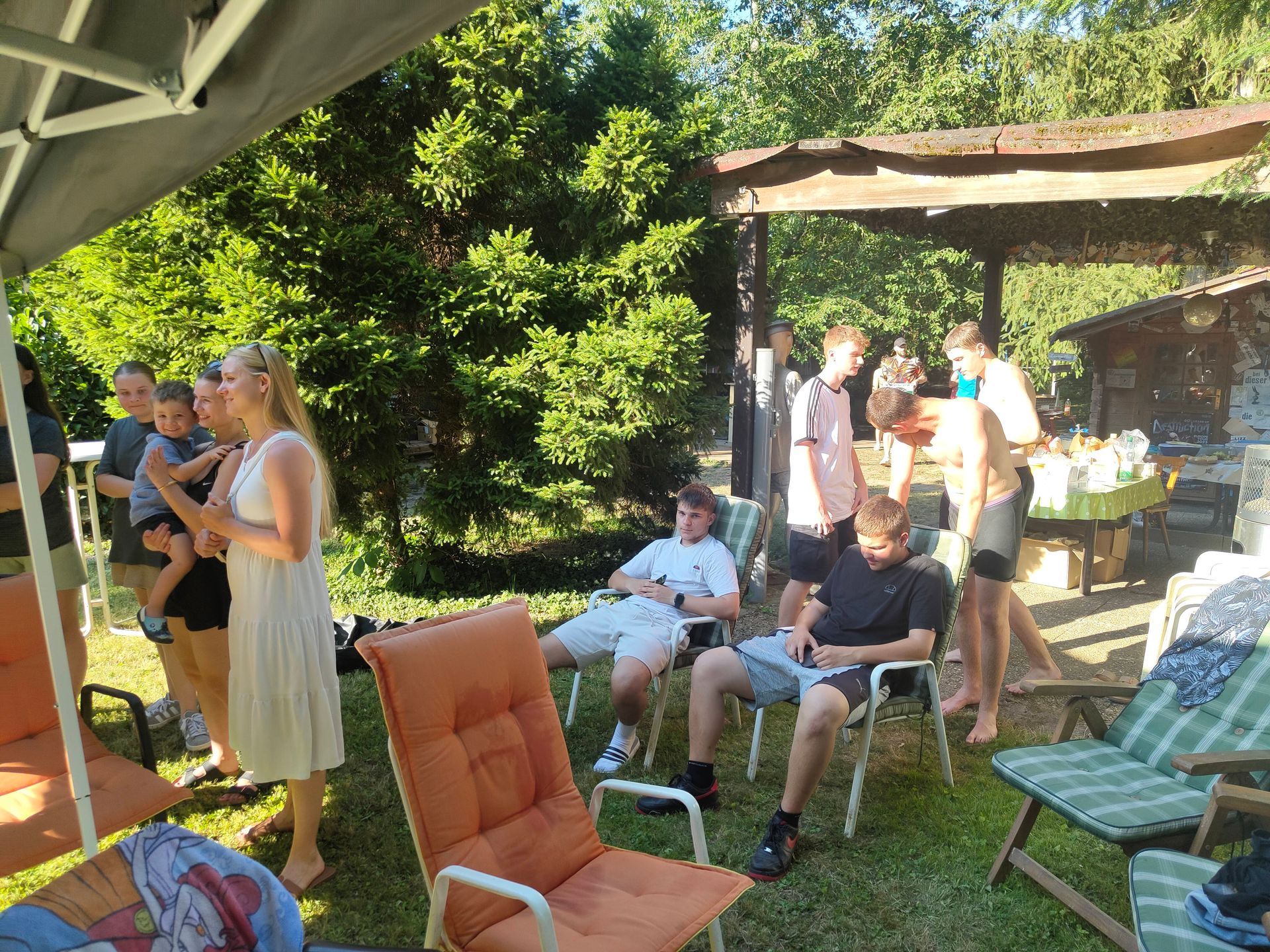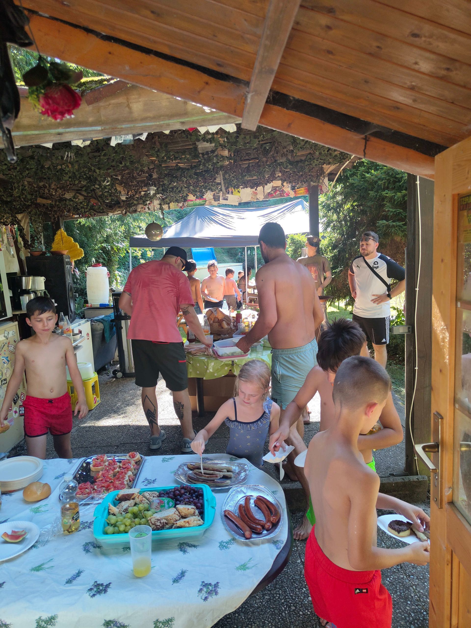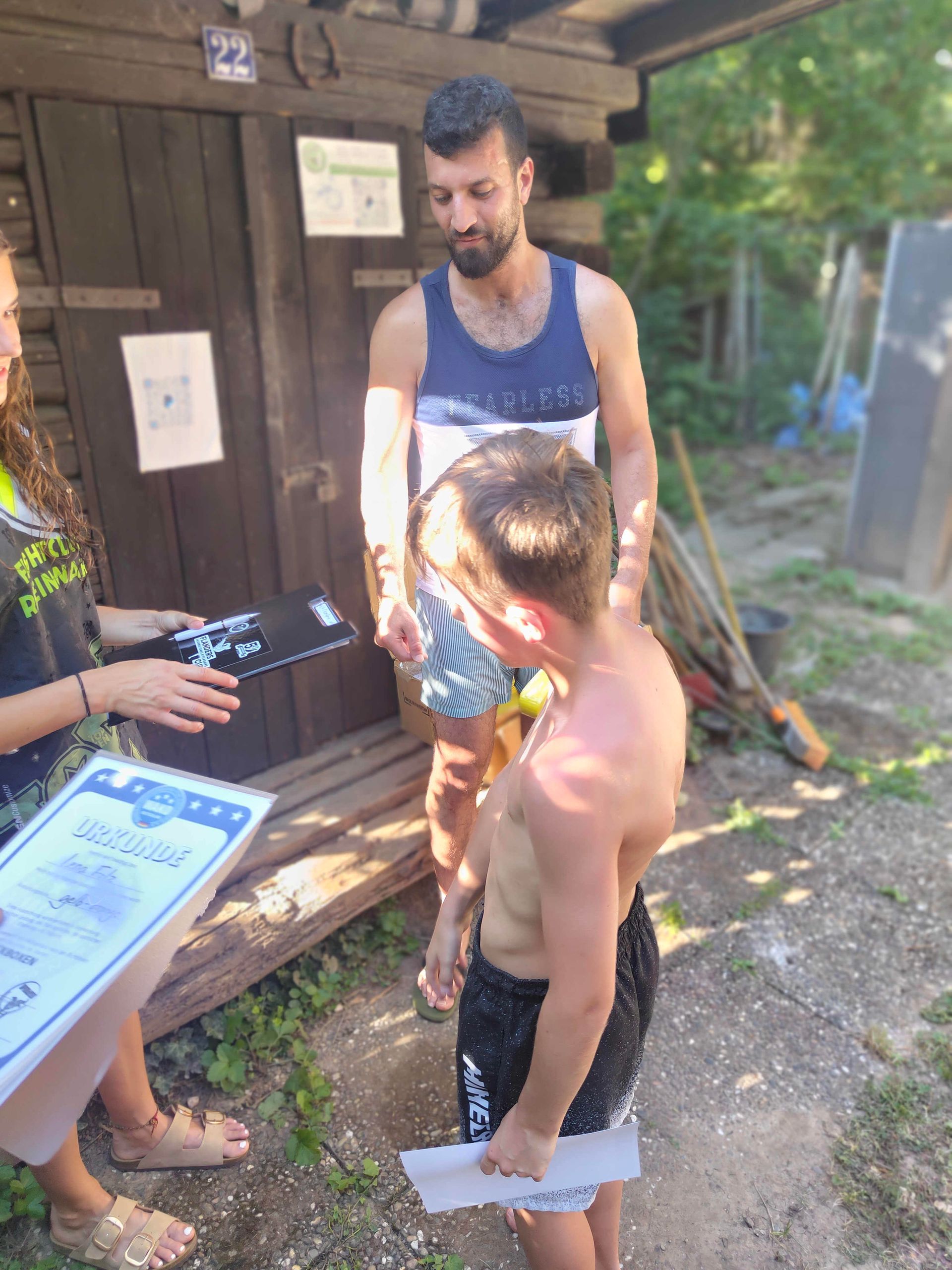 Die Verabschiedung in die Sommerferien wurde auch 2025 wieder mit einer coolen Grillparty in Dirks Garten gebührend gefeiert. Bei brütenden Temperaturen wurden die Gürtel an die Absolventen der, vor kurzem absolvierten Gürtelprüfung übergeben. Die Kids durften die Badehosen auspacken und sich in den Pool stürzen. Die Erwachsenen nutzten die Gartenparty für das ein oder andere Gespräch. Allen hat es Spaß gemacht und dank der reichlichen Salatspenden ist zusammen mit den Würstchen vom Grill auch jeder satt geworden. Jetzt heißt es wohlverdiente Sommerpause und nach den Ferien geht es mit Volldampf wieder voran. Glückwunsch an dieser Stelle nochmal an alle, die die Gürtelprüfung bestanden haben.