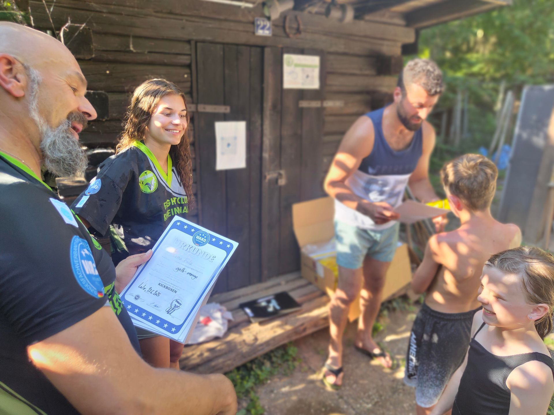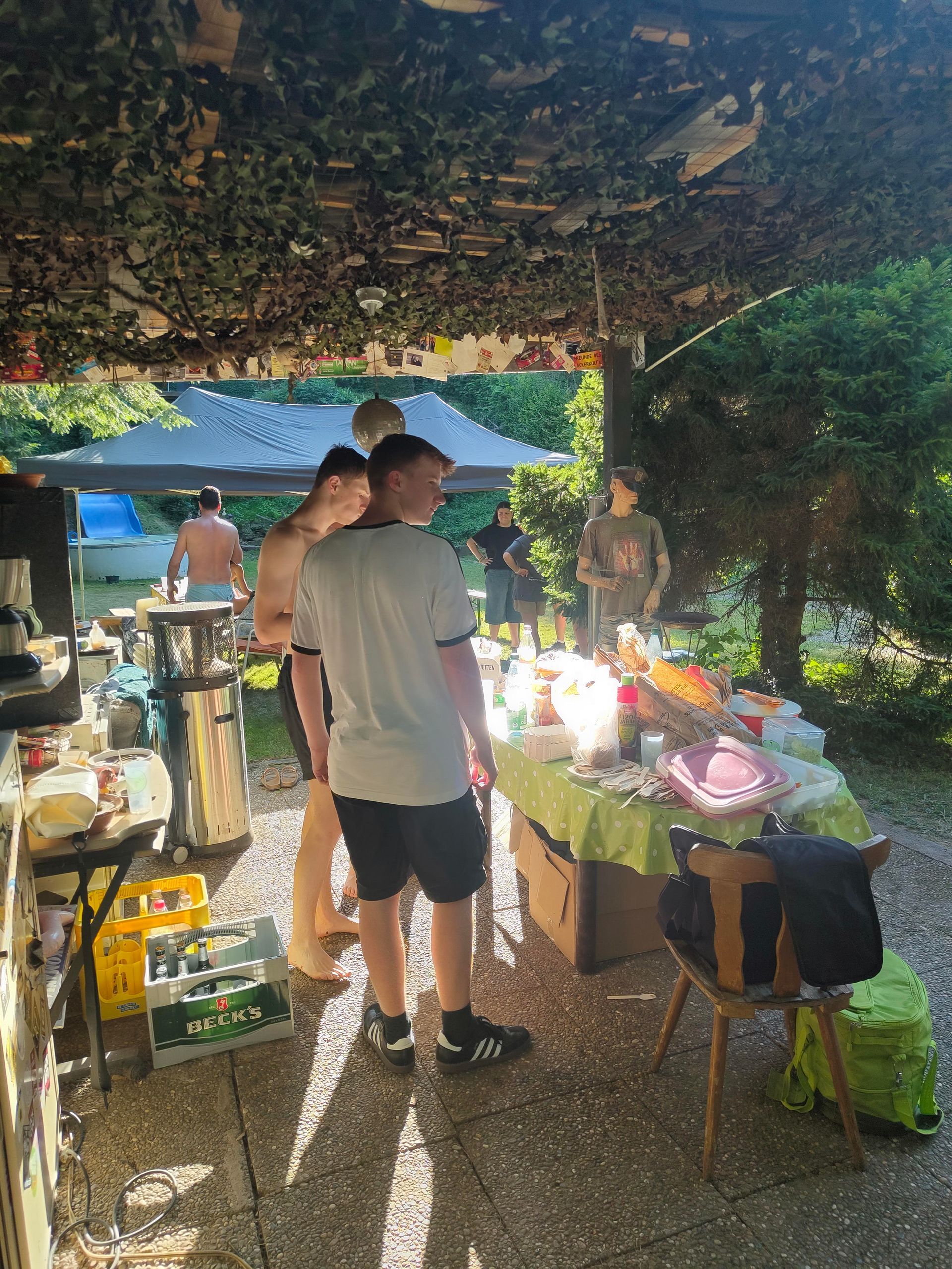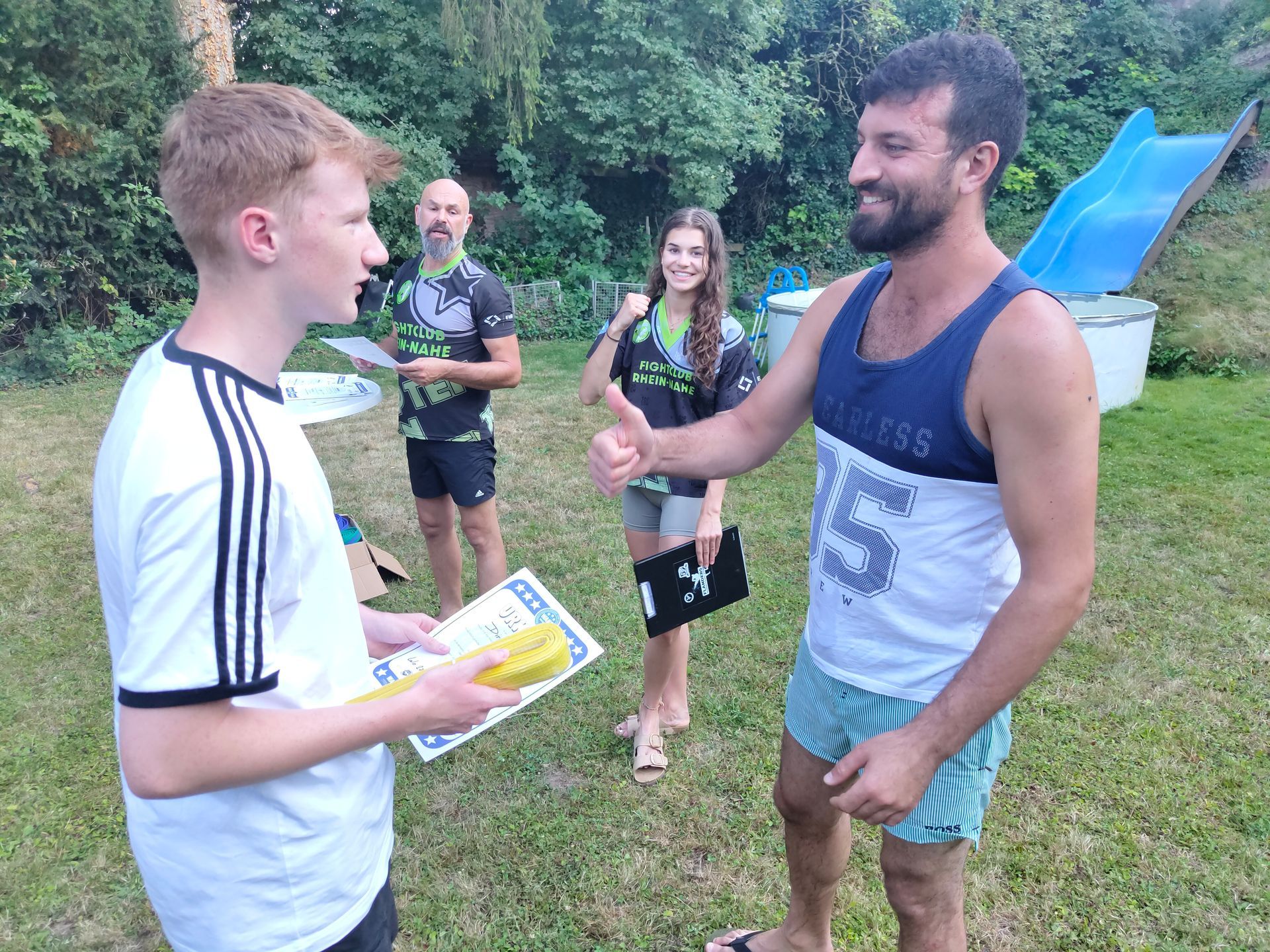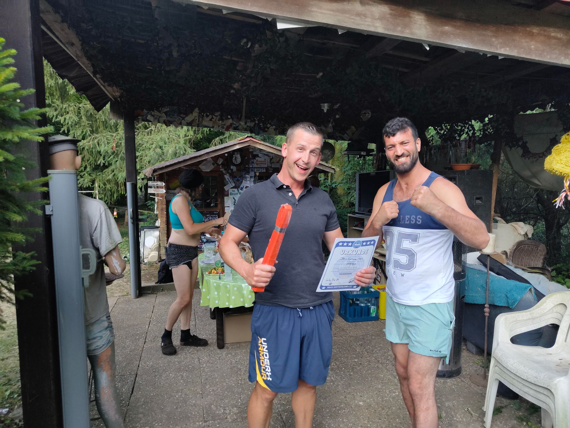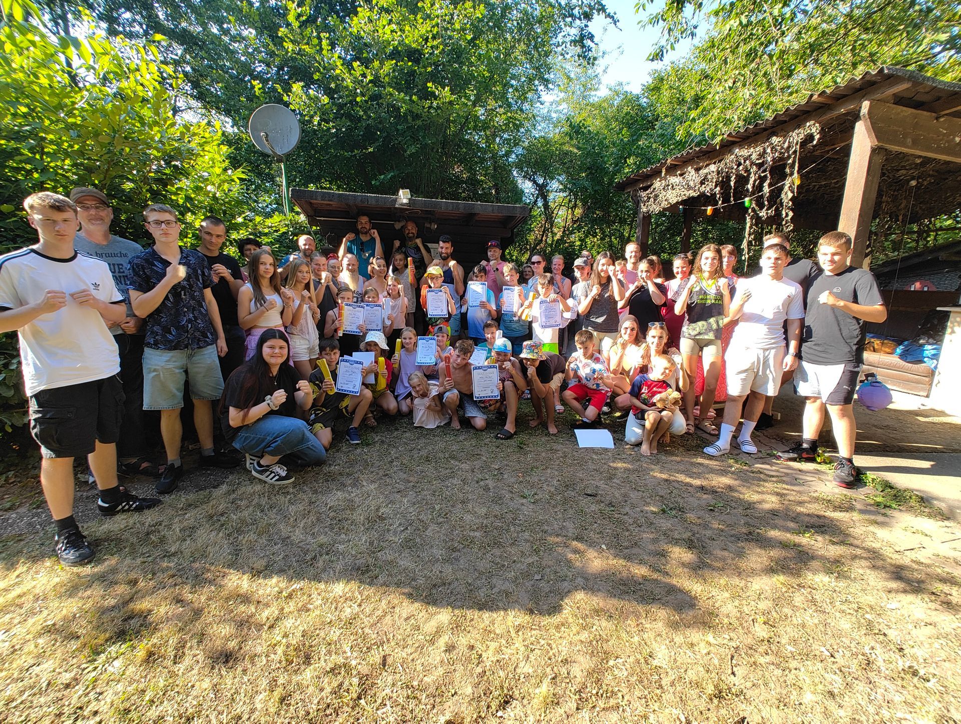 Die Verabschiedung in die Sommerferien wurde auch 2025 wieder mit einer coolen Grillparty in Dirks Garten gebührend gefeiert. Bei brütenden Temperaturen wurden die Gürtel an die Absolventen der, vor kurzem absolvierten Gürtelprüfung übergeben. Die Kids durften die Badehosen auspacken und sich in den Pool stürzen. Die Erwachsenen nutzten die Gartenparty für das ein oder andere Gespräch. Allen hat es Spaß gemacht und dank der reichlichen Salatspenden ist zusammen mit den Würstchen vom Grill auch jeder satt geworden. Jetzt heißt es wohlverdiente Sommerpause und nach den Ferien geht es mit Volldampf wieder voran. Glückwunsch an dieser Stelle nochmal an alle, die die Gürtelprüfung bestanden haben.