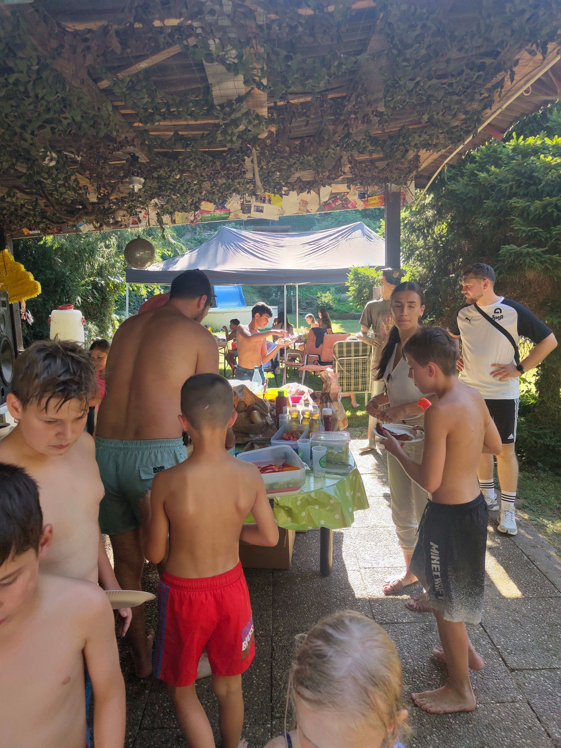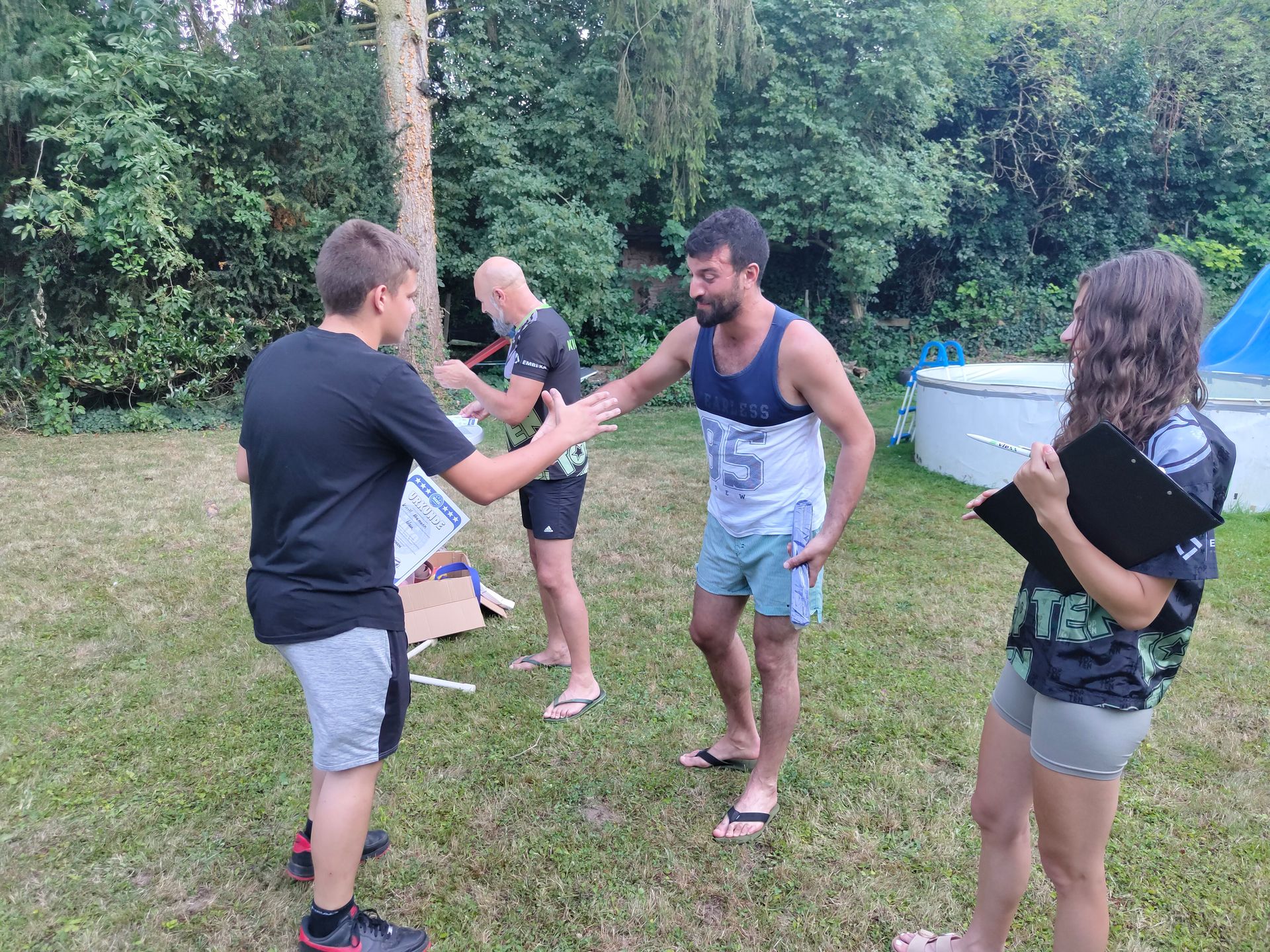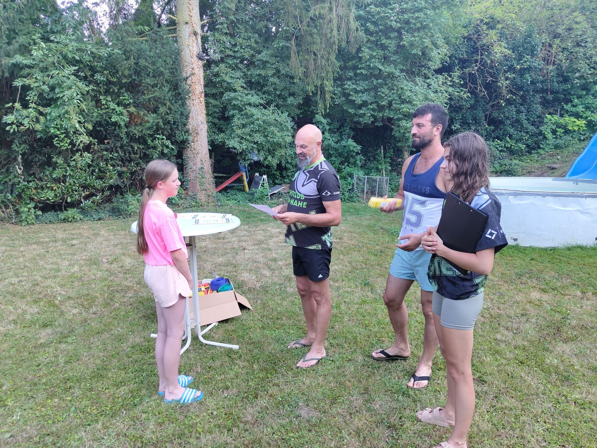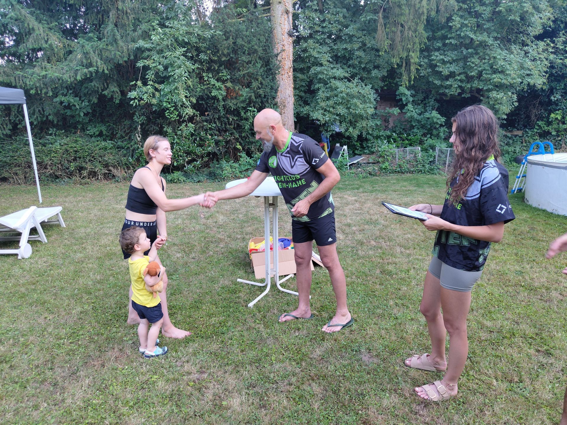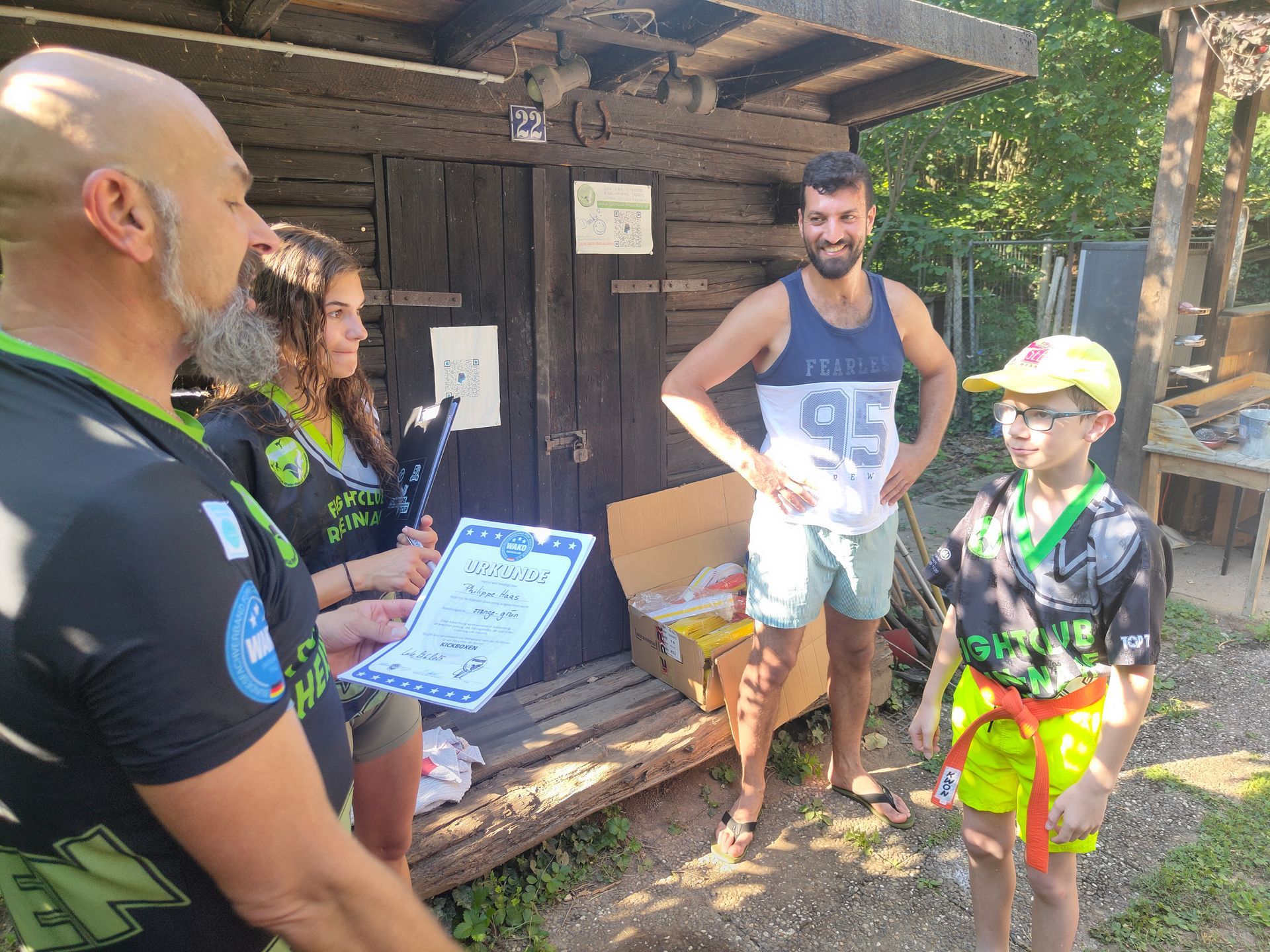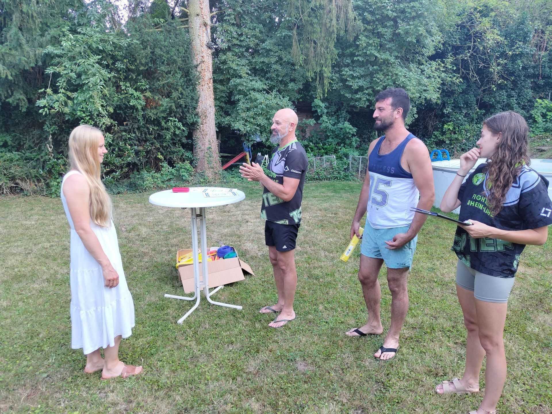 Die Verabschiedung in die Sommerferien wurde auch 2025 wieder mit einer coolen Grillparty in Dirks Garten gebührend gefeiert. Bei brütenden Temperaturen wurden die Gürtel an die Absolventen der, vor kurzem absolvierten Gürtelprüfung übergeben. Die Kids durften die Badehosen auspacken und sich in den Pool stürzen. Die Erwachsenen nutzten die Gartenparty für das ein oder andere Gespräch. Allen hat es Spaß gemacht und dank der reichlichen Salatspenden ist zusammen mit den Würstchen vom Grill auch jeder satt geworden. Jetzt heißt es wohlverdiente Sommerpause und nach den Ferien geht es mit Volldampf wieder voran. Glückwunsch an dieser Stelle nochmal an alle, die die Gürtelprüfung bestanden haben.