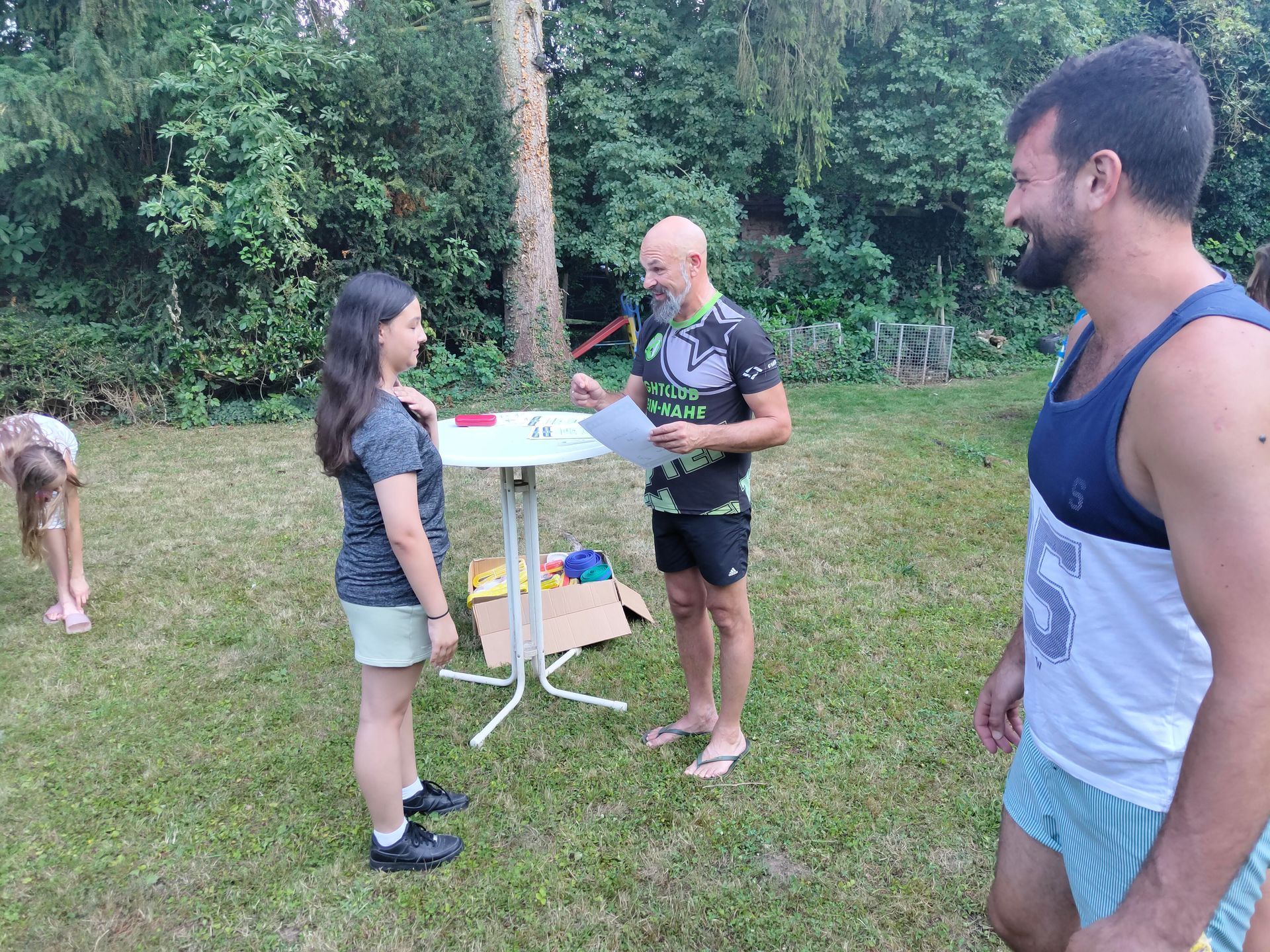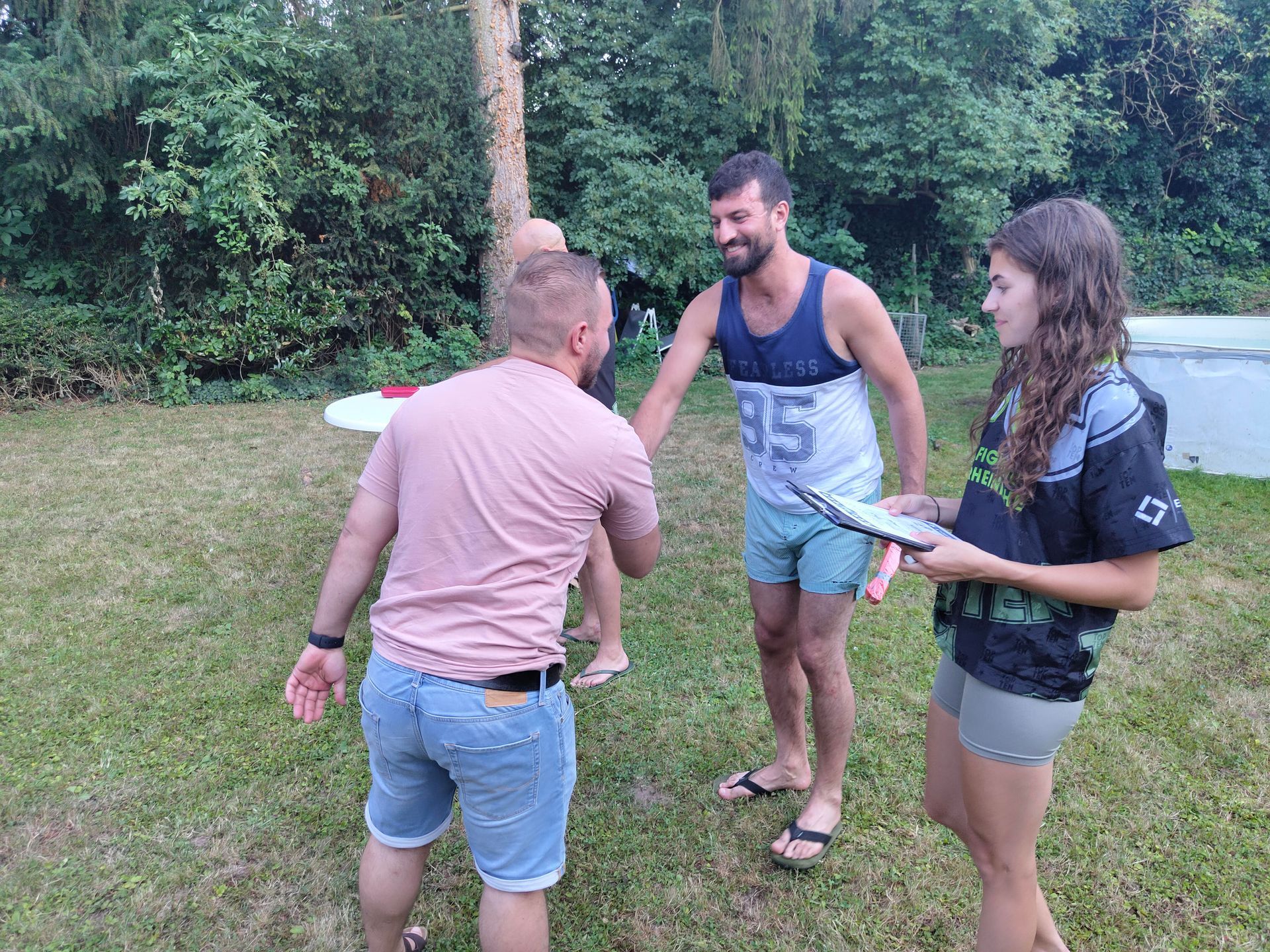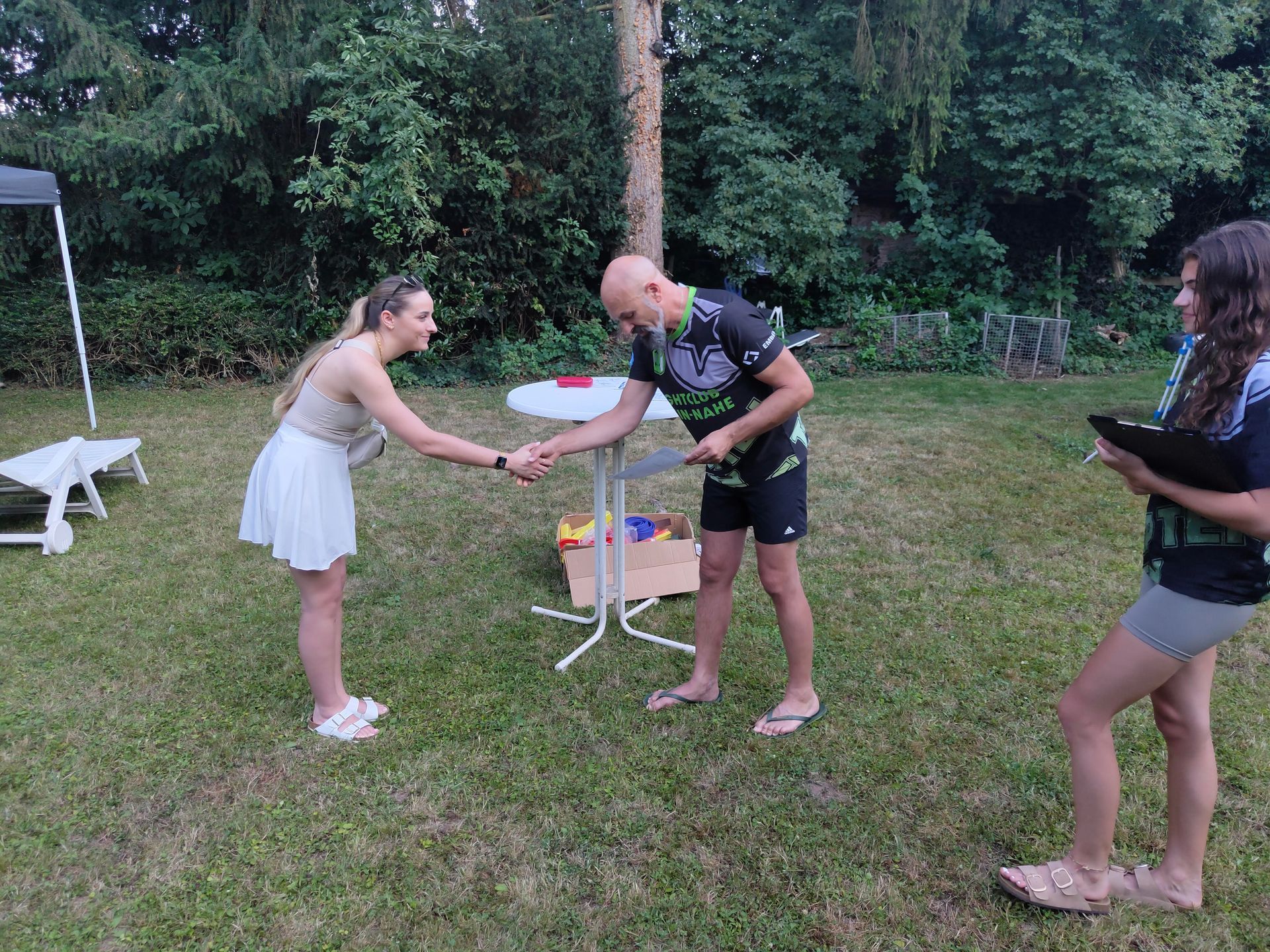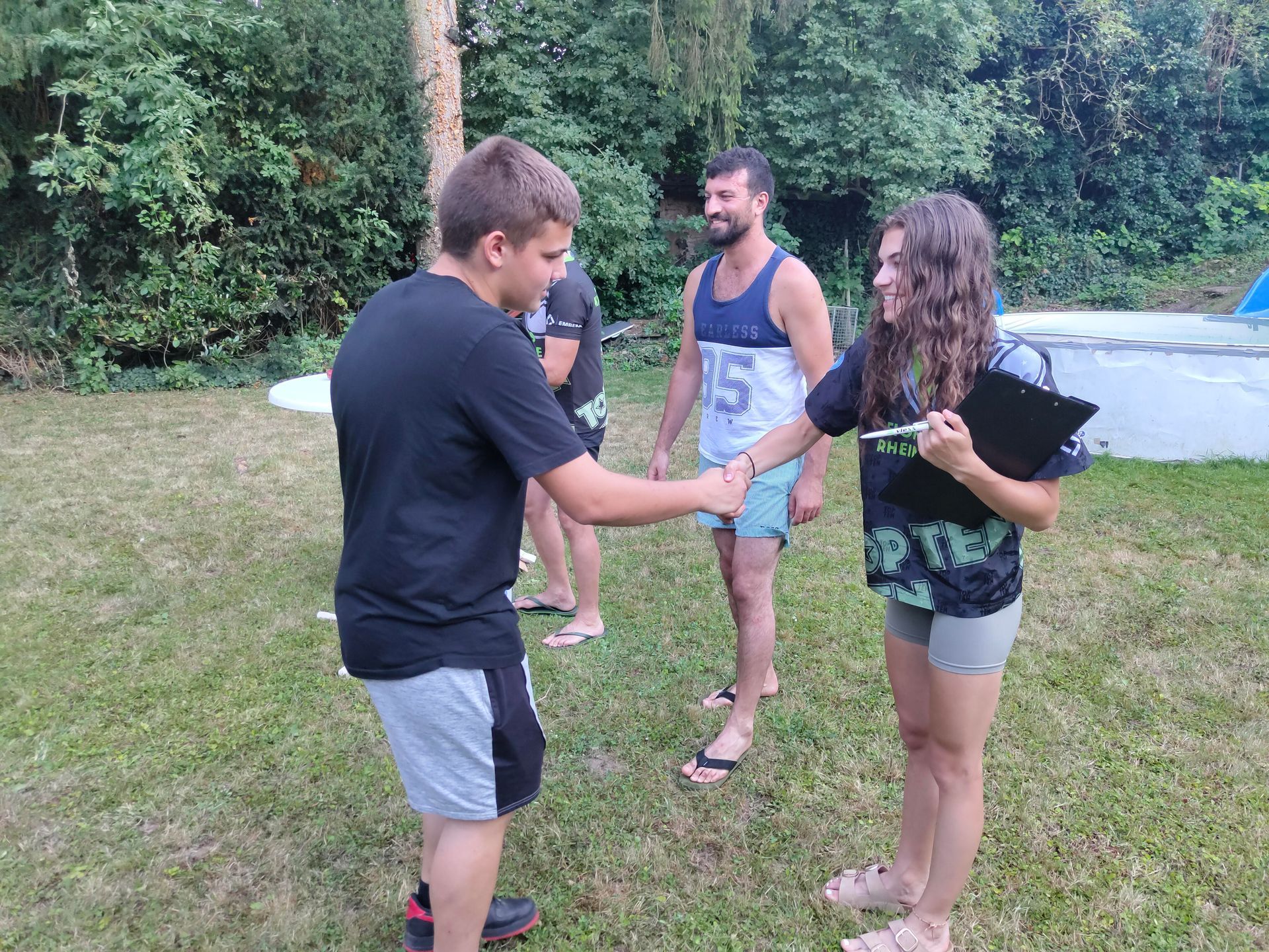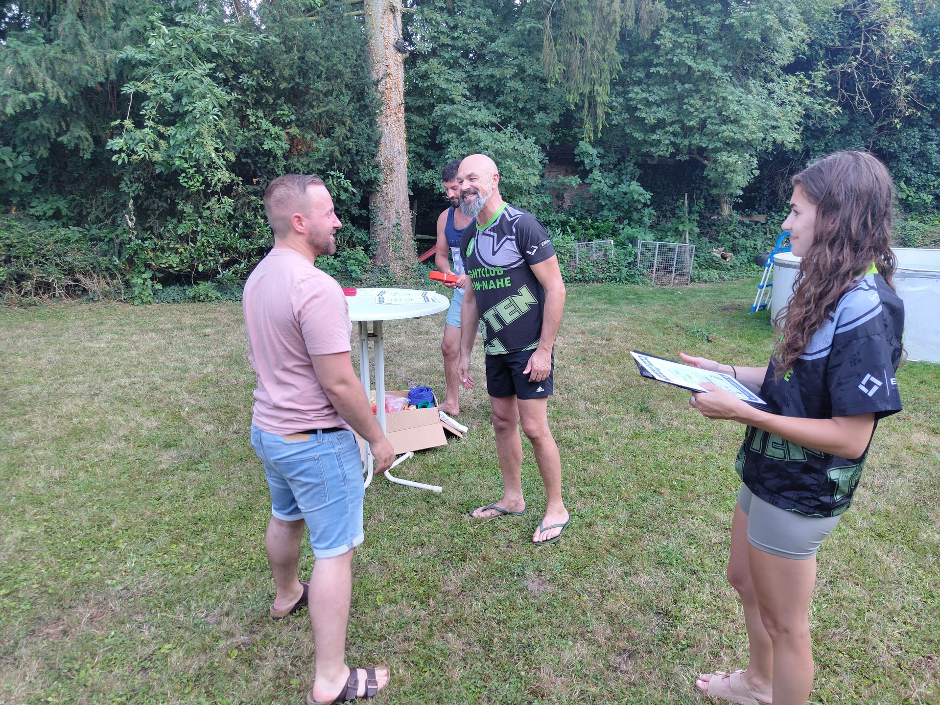 Die Verabschiedung in die Sommerferien wurde auch 2025 wieder mit einer coolen Grillparty in Dirks Garten gebührend gefeiert. Bei brütenden Temperaturen wurden die Gürtel an die Absolventen der, vor kurzem absolvierten Gürtelprüfung übergeben. Die Kids durften die Badehosen auspacken und sich in den Pool stürzen. Die Erwachsenen nutzten die Gartenparty für das ein oder andere Gespräch. Allen hat es Spaß gemacht und dank der reichlichen Salatspenden ist zusammen mit den Würstchen vom Grill auch jeder satt geworden. Jetzt heißt es wohlverdiente Sommerpause und nach den Ferien geht es mit Volldampf wieder voran. Glückwunsch an dieser Stelle nochmal an alle, die die Gürtelprüfung bestanden haben.