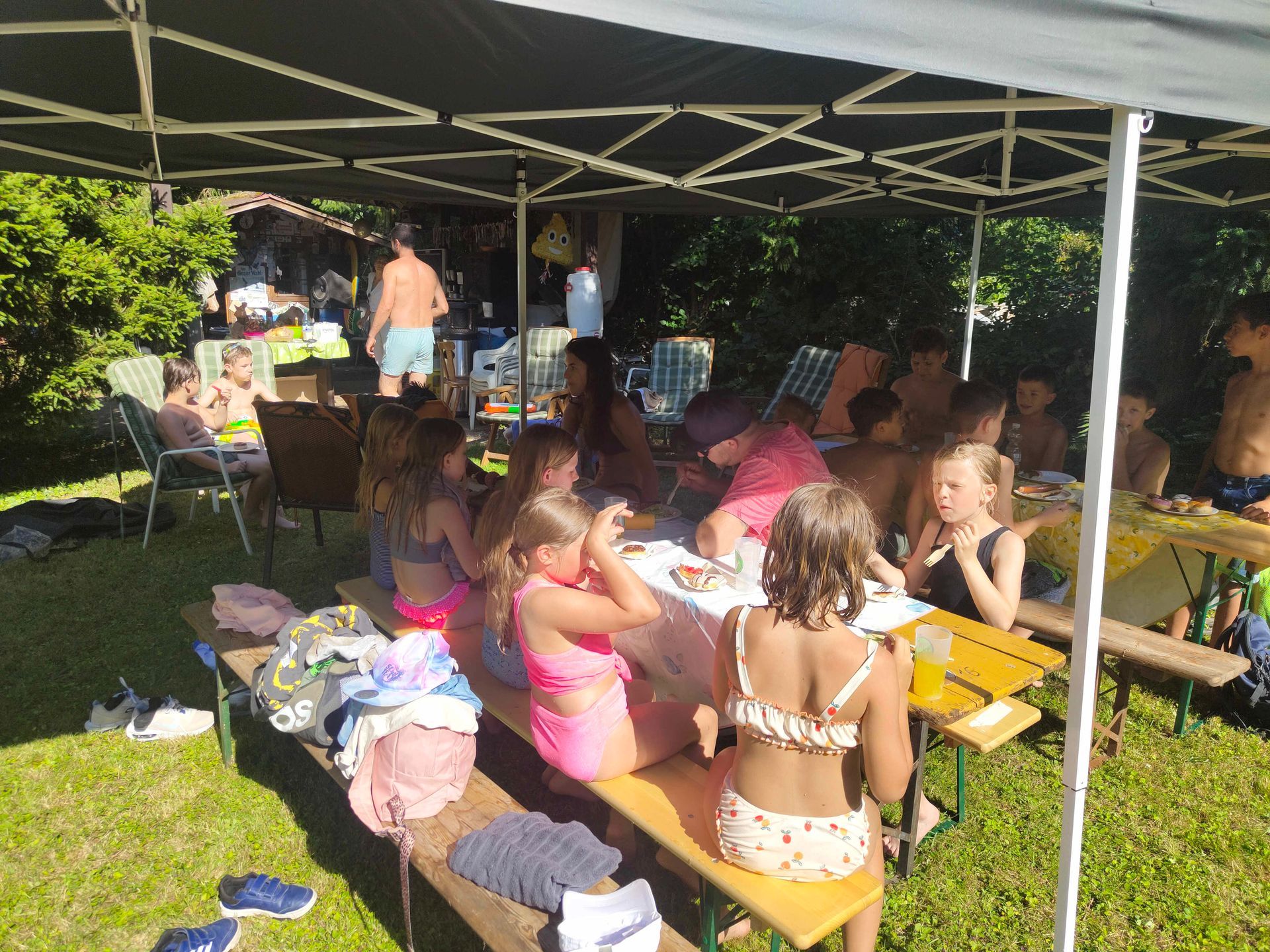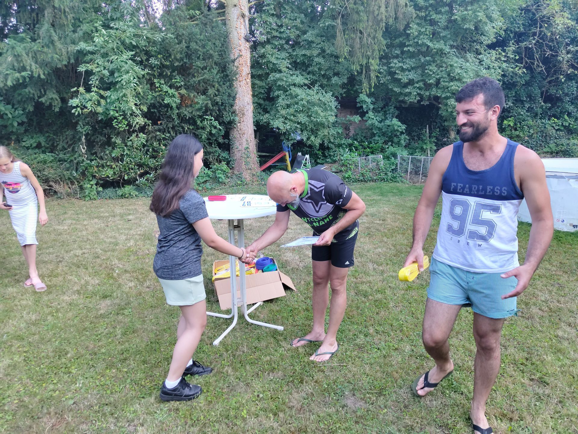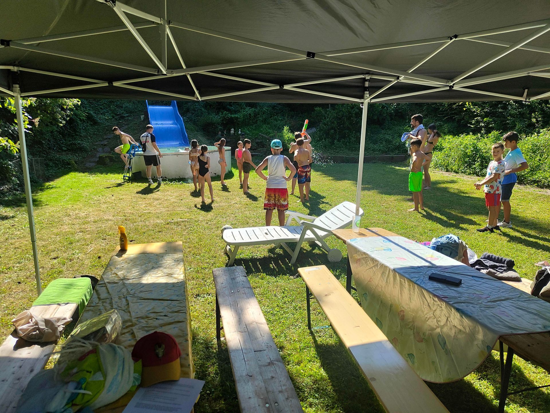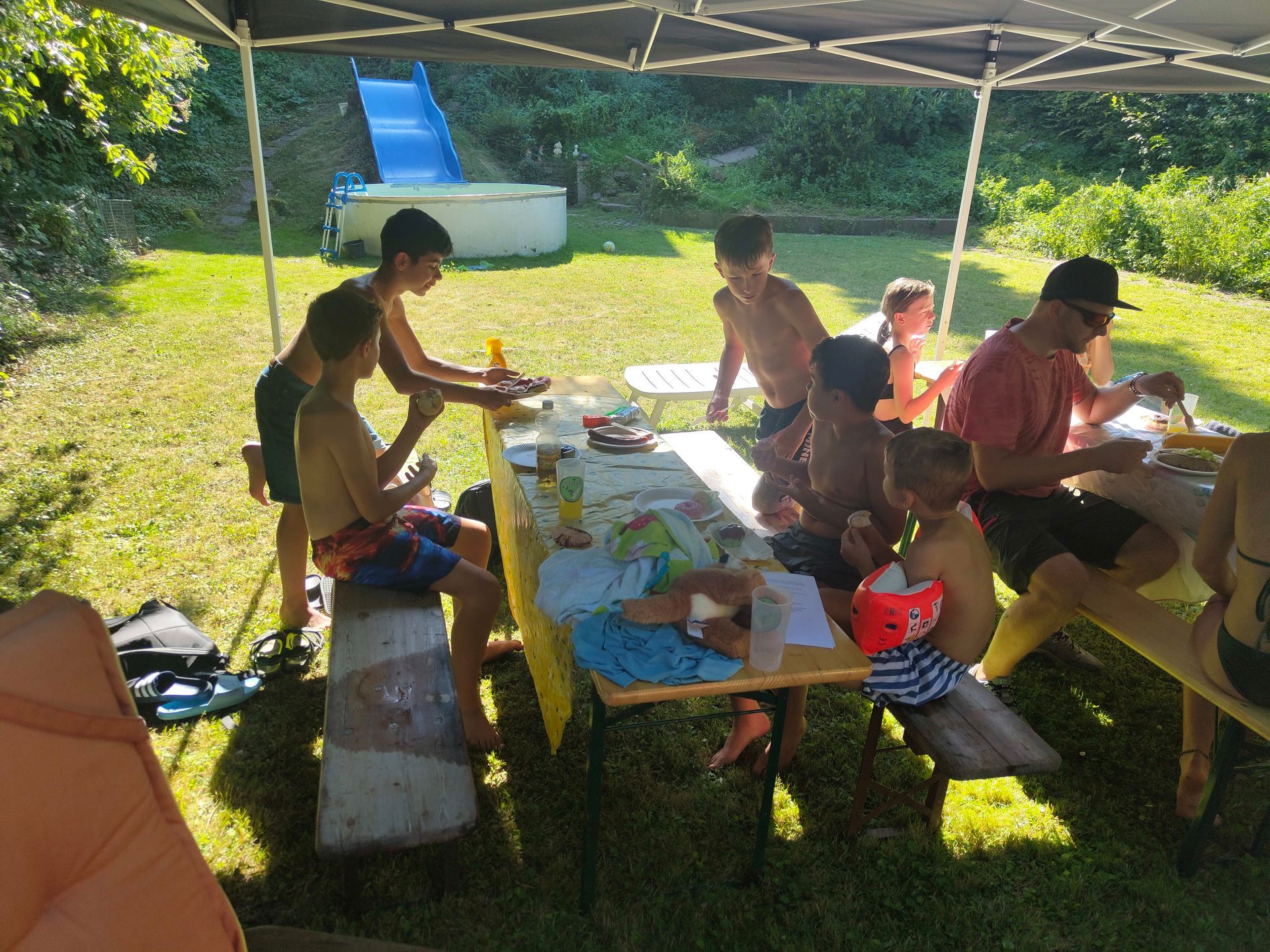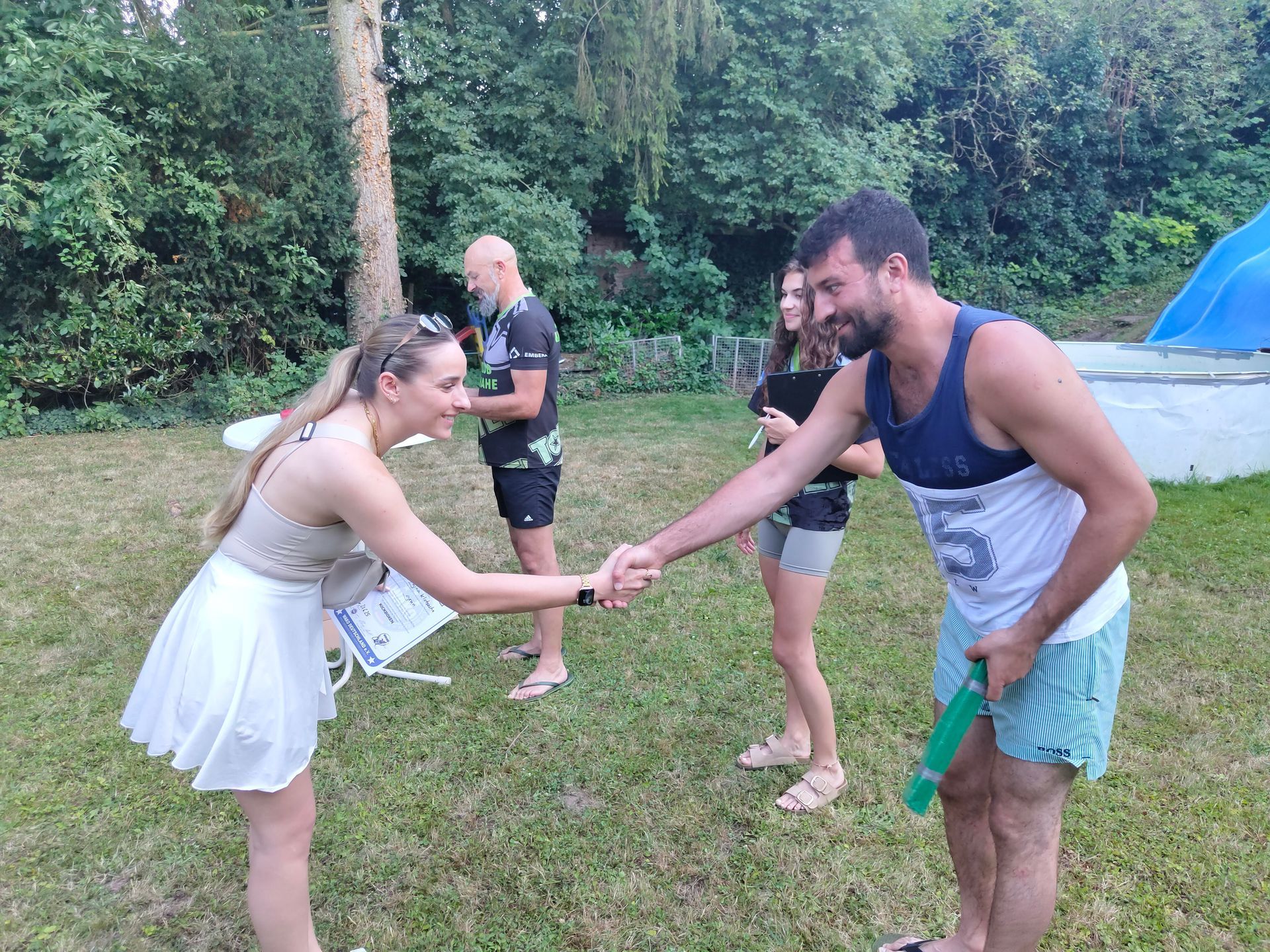 Die Verabschiedung in die Sommerferien wurde auch 2025 wieder mit einer coolen Grillparty in Dirks Garten gebührend gefeiert. Bei brütenden Temperaturen wurden die Gürtel an die Absolventen der, vor kurzem absolvierten Gürtelprüfung übergeben. Die Kids durften die Badehosen auspacken und sich in den Pool stürzen. Die Erwachsenen nutzten die Gartenparty für das ein oder andere Gespräch. Allen hat es Spaß gemacht und dank der reichlichen Salatspenden ist zusammen mit den Würstchen vom Grill auch jeder satt geworden. Jetzt heißt es wohlverdiente Sommerpause und nach den Ferien geht es mit Volldampf wieder voran. Glückwunsch an dieser Stelle nochmal an alle, die die Gürtelprüfung bestanden haben.