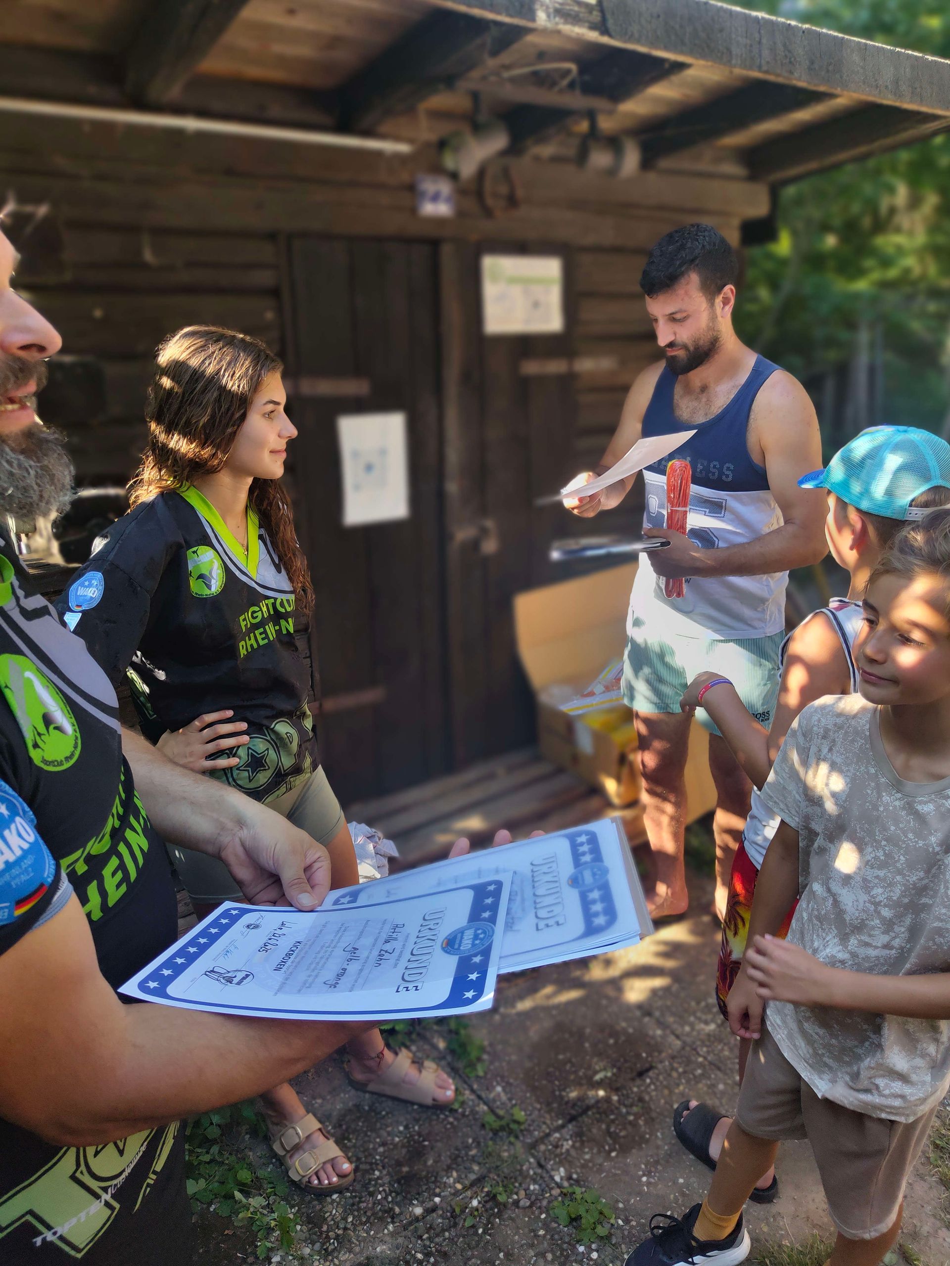 Am 12.12.2025 feierten unsere Kampfteens und Kickboxer ihren Jahresabschluss in gemütlicher Atmosphäre im Vorraum der Gemeindehalle Lalo. Dank eines vielfältigen Buffets und vieler helfender Hände war für jeden Geschmack etwas dabei – jeder Einzelne trug zum Gelingen dieses schönen Abends bei. Ein besonderer Höhepunkt war die Ehrung unserer erfolgreichen Athleten: Theresa, Europameisterin der WAKO, und Luca, Weltmeister der WKU, wurden für ihre herausragenden sportlichen Leistungen vom 1. Vorsitzenden mit einem besonderen T-Shirt ausgezeichnet. Auch im Bereich der Graduierungen gab es Grund zur Freude: Nils, Lennart, Constantin und Mergim wurden mit ihrem frisch erworbenen braunen Gürtel überrascht. Daniel erhielt feierlich von Dirk seinen 1. DAN (schwarzer Gürtel) mit persönlicher Namensbestickung überreicht. Für viel Gelächter sorgte der unerwartete Besuch des Weihnachtsmannes und seines Gehilfen Knecht Ruprecht. Mit humorvollen Anekdoten über jeden Anwesenden und dem gelegentlichen Einsatz der Rute wurde die Feier auf besonders unterhaltsame Weise bereichert. Es war ein rundum gelungenes Fest, und alle Teilnehmer gingen glücklich, zufrieden und mit vielen schönen Erinnerungen nach Hause.