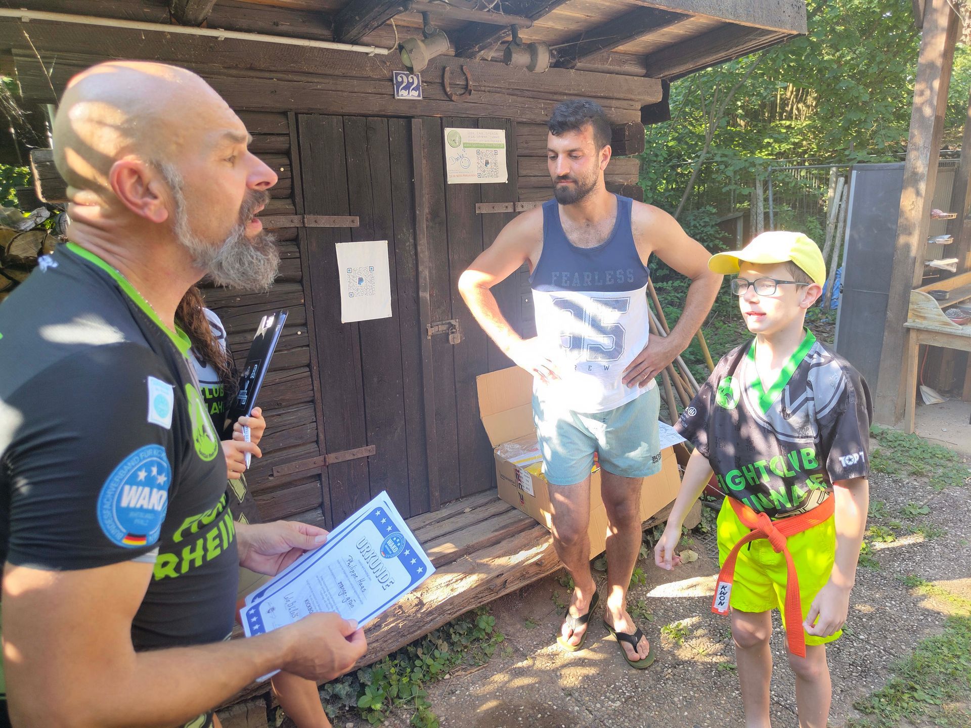 Am 29. November 2025 fand im Sportstudio Mannerz in Ludwigshafen die diesjährige Braun- und Schwarzgurtprüfung der WAKO Rheinland-Pfalz statt. Insgesamt 14 Prüflinge stellten sich der anspruchsvollen mehrstündigen Prüfung und zeigten dabei ihr technisches Können, ihre Ausdauer sowie ihren Kampfgeist. Wir freuen uns ganz besonders, dass vier unserer Sportlerinnen und Sportler nach intensiver und monatelanger Vorbereitung den braunen Gürtel erfolgreich bestanden haben. Ein weiterer Athlet krönte seine Leistung sogar mit dem 1. DAN – dem schwarzen Gürtel im Kickboxen. Hohe Anforderungen für den Schwarzgurt Die Anforderungen für den 1. DAN sind enorm: Neben der technischen und konditionellen Prüfung müssen die Kandidaten unter anderem - eine Erste-Hilfe-Ausbildung vorweisen, - drei kickboxspezifische Lehrgänge erfolgreich absolvieren, - darunter eine Kampfrichterausbildung. Diese Leistungen zeigen eindrucksvoll den Einsatz, die Disziplin und den Ehrgeiz unserer Sportlerinnen und Sportler. Vier Prüfer vor Ort – Hochkarätige Expertise Die Prüfung wurde von einem vierköpfigen Prüferteam abgenommen. Unter ihnen befand sich auch Dirk Pekrul (3. DAN Kickboxen), Trainer des SC Rhein-Nahe . Die Prüfer lobten das hohe technische Niveau und den starken Teamgeist aller Teilnehmenden. Herzlichen Glückwunsch! Daniel Jacoby 1. DAN Schwarz Gurt Nils Olbrisch Braun Gurt Mergim Bajraktaraj Braun Gurt Contantin Zwiegela Braun Gurt Lennart Graffe Braun Gurt Wir sind stolz auf die hervorragenden Leistungen unserer Athletinnen und Athleten. Ihr Engagement, eure Disziplin und eure Leidenschaft für den Sport haben sich ausgezahlt. Herzlichen Glückwunsch an alle Prüflinge – ganz besonders an unsere neuen Braun- und Schwarzgurtträger!