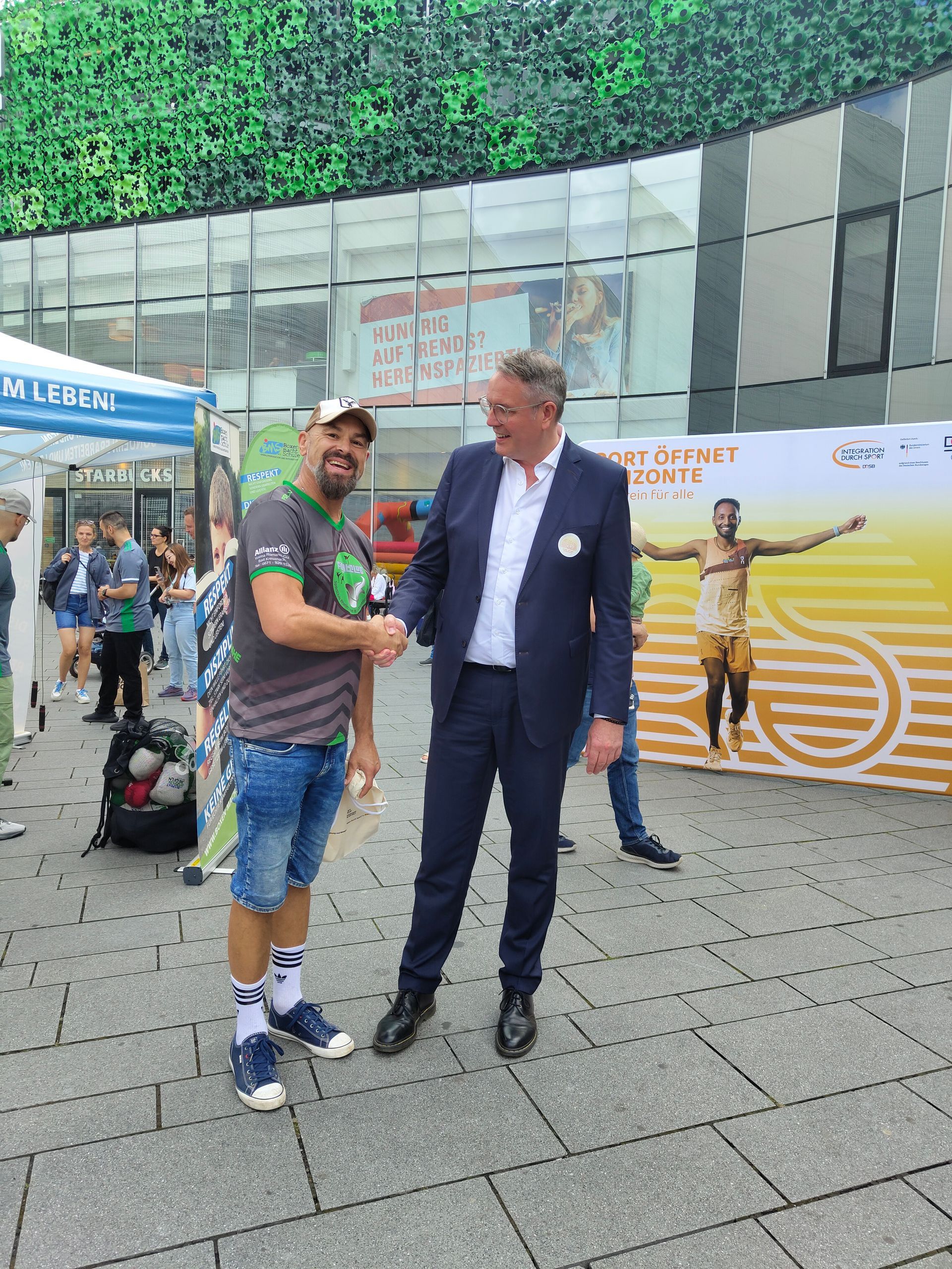 Am 30. August 2025 feierte das Bundesprogramm „Integration durch Sport“ sein 35-jähriges Bestehen in Rheinland-Pfalz. Über 300 geladene Gäste aus Sport, Politik und Gesellschaft kamen auf dem Koblenzer Zentralplatz zusammen, um die Erfolge des Programms zu würdigen und ein starkes Zeichen für Vielfalt und Zusammenhalt zu setzen. Stellvertretend für unseren Verein nahmen Caner und Dirk an der Feier teil. Im Rahmen des abwechslungsreichen Programms mit Podiumsdiskussionen, Mitmachaktionen und sportlichen Darbietungen wurden auch die teilnehmenden Vereine auf die Bühne gerufen. Dort erhielten wir ein Banner für unser Projekt, das von Denise speziell für Mädchen und Frauen als Trailrunning-Angebot im Langenlonsheimer Wald umgesetzt wird. Die Veranstaltung machte einmal mehr deutlich, wie wichtig Sport für Integration, Respekt und Fairness ist – Werte, die auch wir als Verein tagtäglich leben.