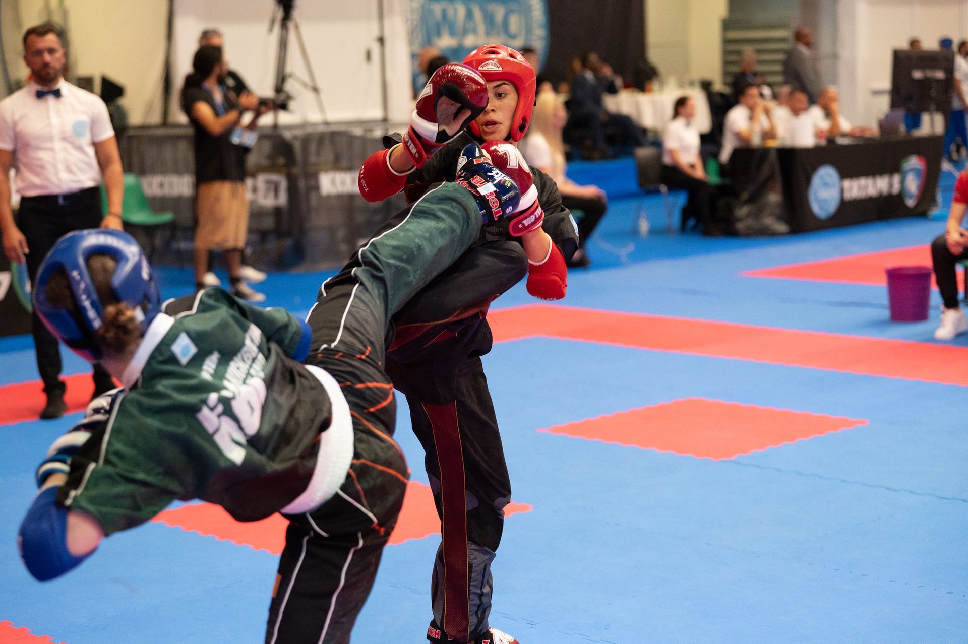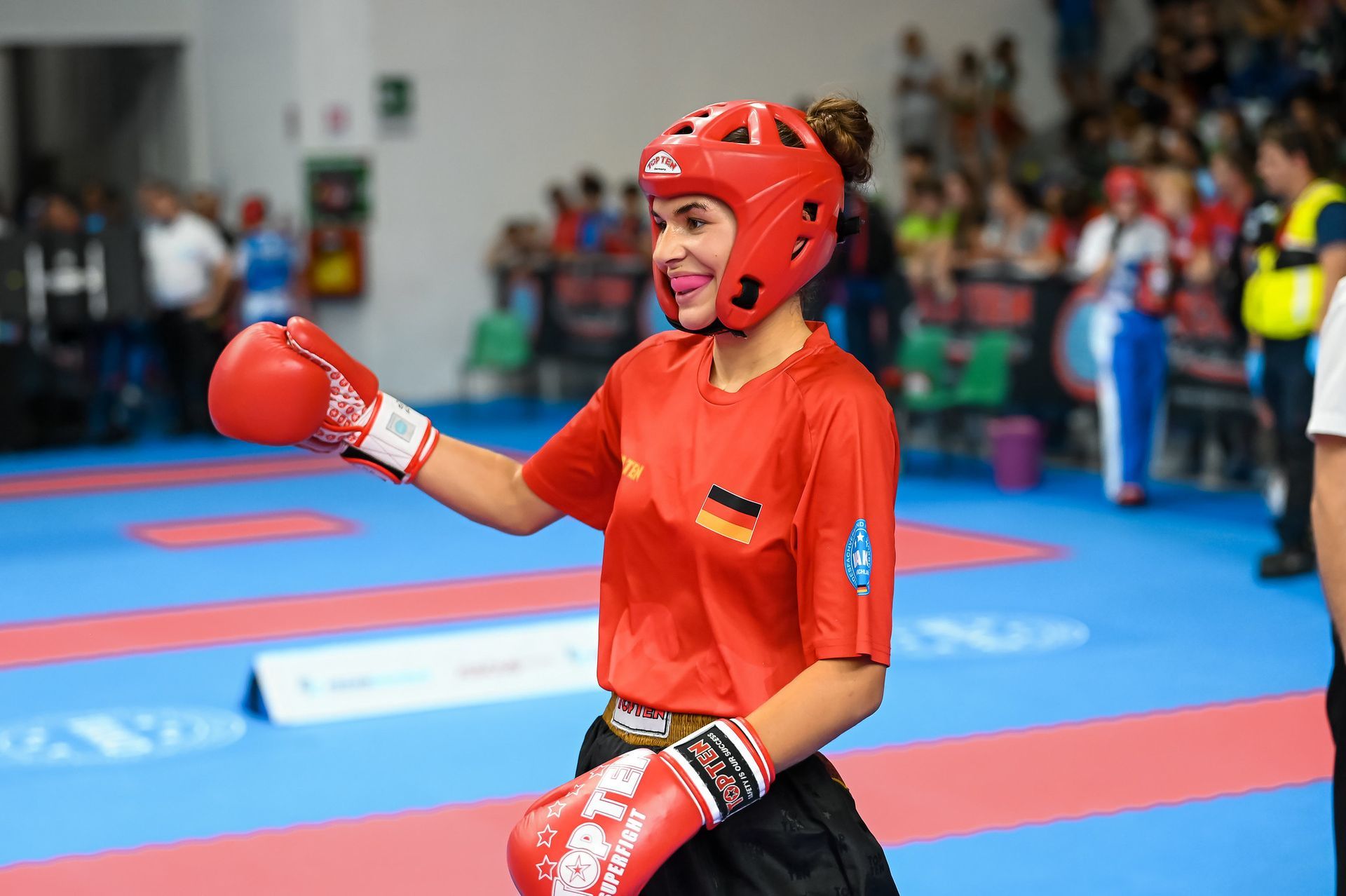 Nach bestandener Waage begann für Theresa am 22. September das Turnier. Aufgrund ihres ersten Platzes in der Weltrangliste erhielt sie ein Freilos, musste aber direkt am ersten Tag gegen die erfahrene Irin Sarah Hanratty antreten – ehemalige Welt- und Europameisterin bei den Older Cadets. Trotz Nervosität setzte sich Theresa souverän mit technischer Überlegenheit in der ersten Runde durch.