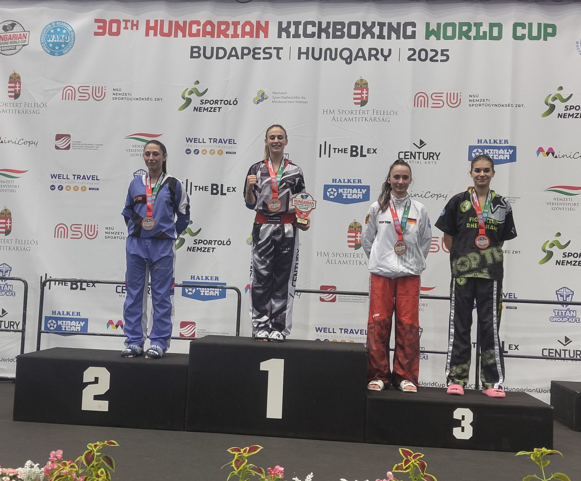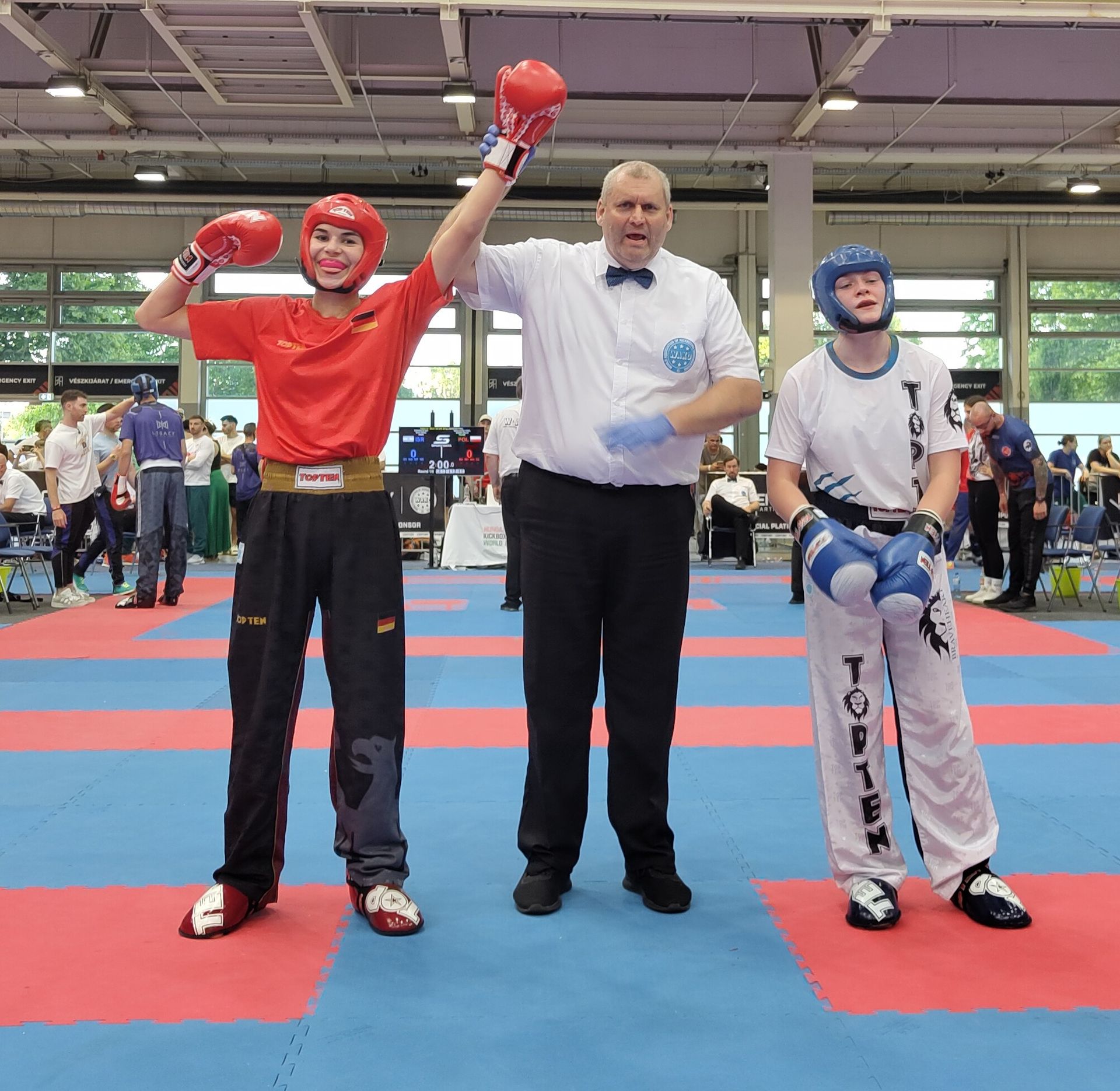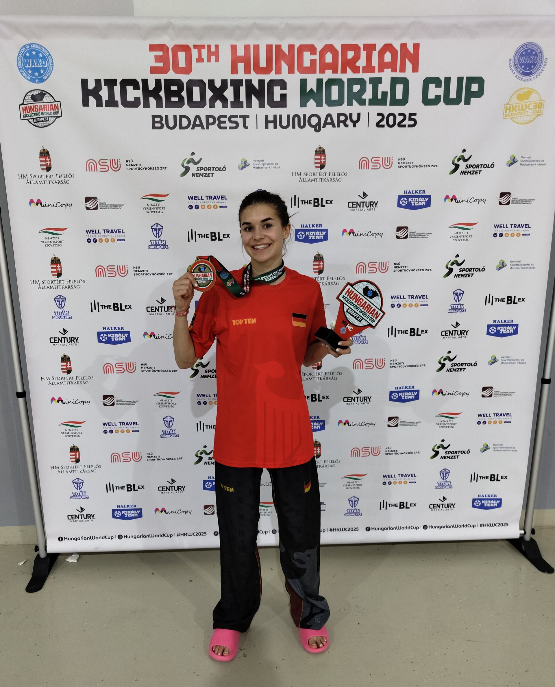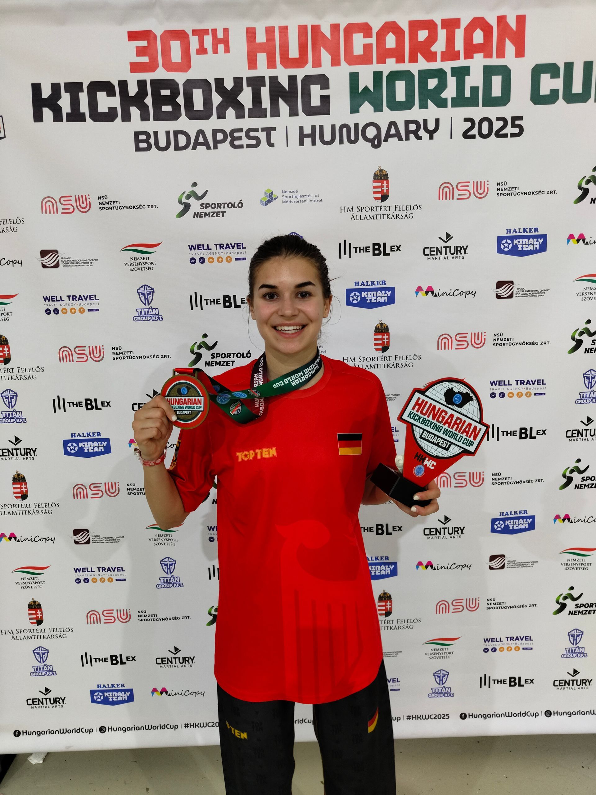 Budapest/Langenlonsheim - Beim größten und international renommiertesten Kickboxturnier der Welt, dem World Cup in Budapest, der mit rund 4.000 Athletinnen und Athleten aus 52 Nationen besetzt war, zeigte Theresa Pekrul erneut ihre internationale Klasse. Die 18-jährige Bundeskaderathletin des WAKO Deutschland e.V. startete in drei Wettbewerben in zwei Disziplinen - Pointfight und Lightcontact - und holte sich eine Gold-, eine Silber- und eine Bronzemedaille.