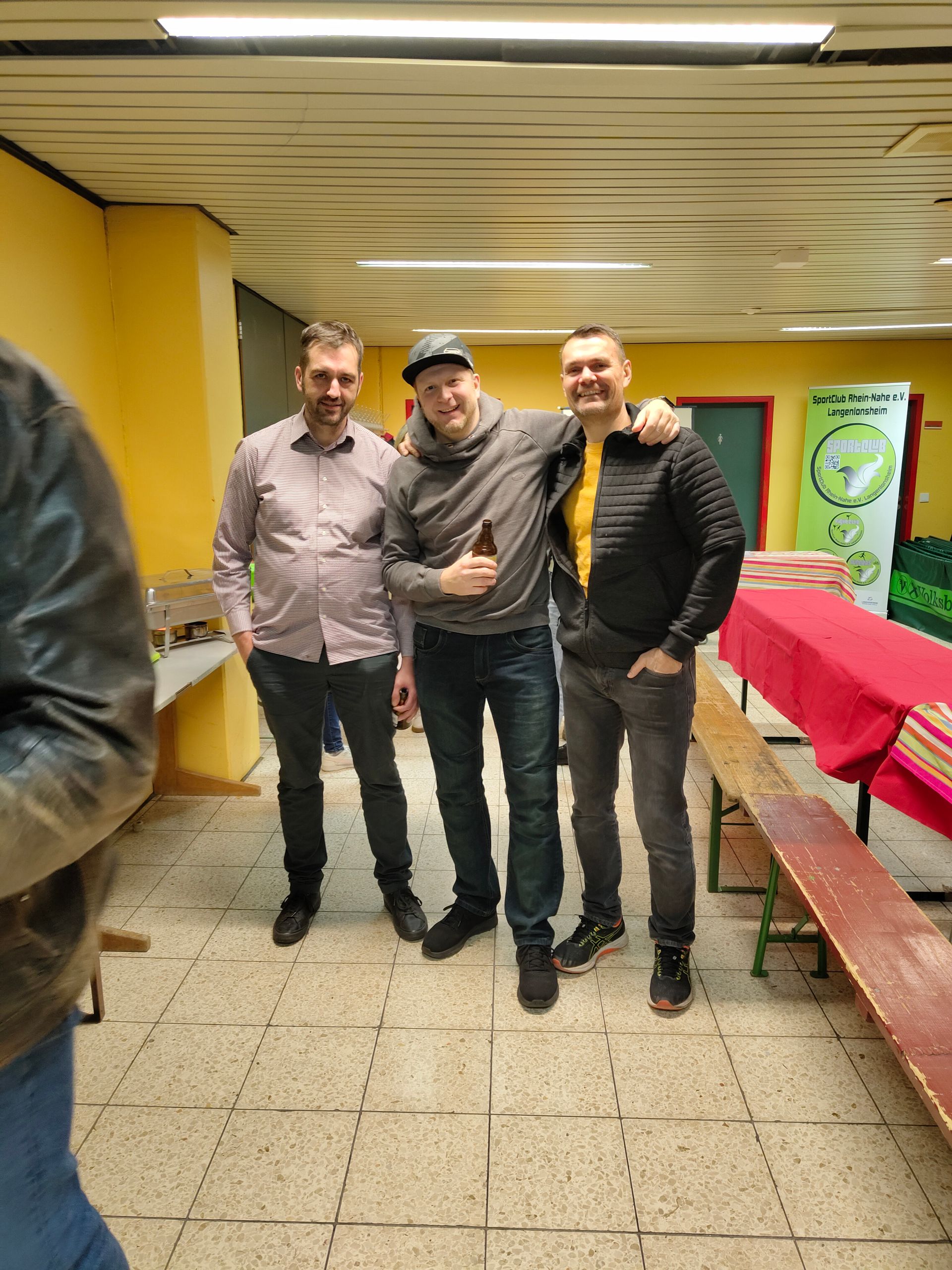 Am 17. Dezember 2025 fand die gemeinsame Weihnachtsfeier der Abteilungen Anusara Yoga, Schwimm Dich fit, HIIT, Crossworkout und Kampfsport im Vorraum der großen Halle in Langenlonsheim statt. Im Vorfeld konnten sich alle Teilnehmerinnen und Teilnehmer in eine Liste eintragen und angeben, welche kulinarische Überraschung sie mitbringen möchten. So entstand ein vielfältiges Buffet mit zahlreichen selbstgemachten Leckereien, bei dem für jeden Geschmack etwas dabei war. Der 1. Vorsitzende Dirk eröffnete den Abend mit einer kurzen Ansprache. Dabei machte er noch einmal deutlich, dass der Sportclub dringend Unterstützung bei der Bewältigung der anfallenden Aufgaben benötigt. Jede helfende Hand sowie neue Ideen und Anregungen seien herzlich willkommen und würden vom Verein gerne aufgenommen und – wenn möglich – umgesetzt. Zudem wies er auf die kommende Mitgliederversammlung hin und äußerte den Wunsch, diese zukünftig mit einer noch größeren Beteiligung der Mitglieder durchführen zu können. Abschließend bedankte sich Dirk bei den übrigen Vorstandsmitgliedern, den Übungsleiterinnen und Übungsleitern sowie bei den treuen Mitgliedern für ihr Engagement und ihre Unterstützung. Mit den besten Wünschen für ein erfolgreiches und gesundes Jahr 2026 sowie frohe Weihnachten beendete er seine Ansprache. Im Anschluss wurde noch lange in geselliger Runde gefeiert, gelacht und sich ausgetauscht. Am Ende des Abends gingen alle zufrieden und mit vielen schönen Eindrücken nach Hause.